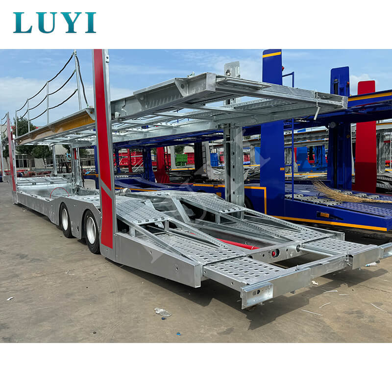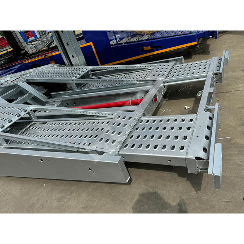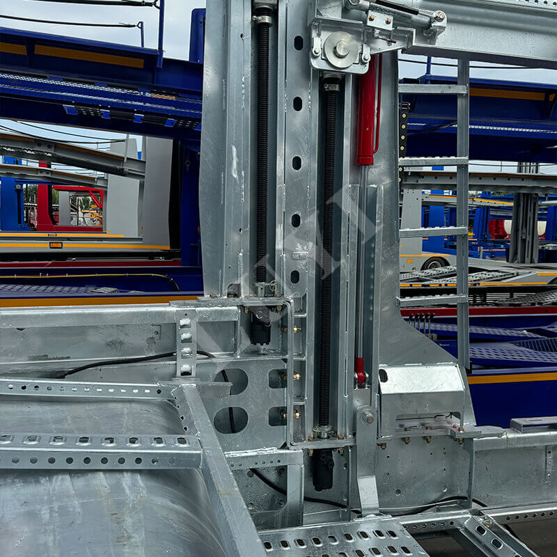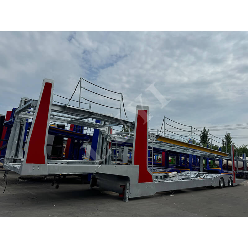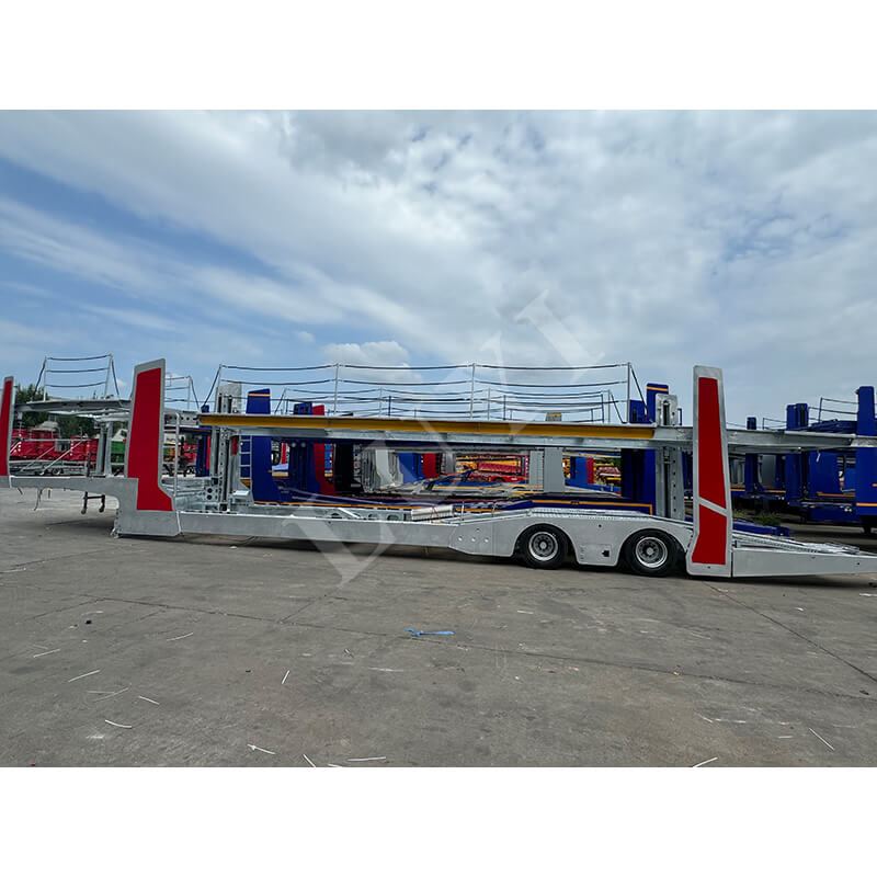 Le transporteur de véhicules à deux étages à 2 axes de 17 mètres peut ajuster de manière flexible la hauteur du sol pour s'adapter à différents modèles grâce à la fonction de levage et améliorer la capacité de chargement du véhicule avec une structure à double couche. Il est conçu pour fournir des services de transport de véhicules efficaces pour des scénarios tels que la logistique automobile et le transbordement de magasins 4S.