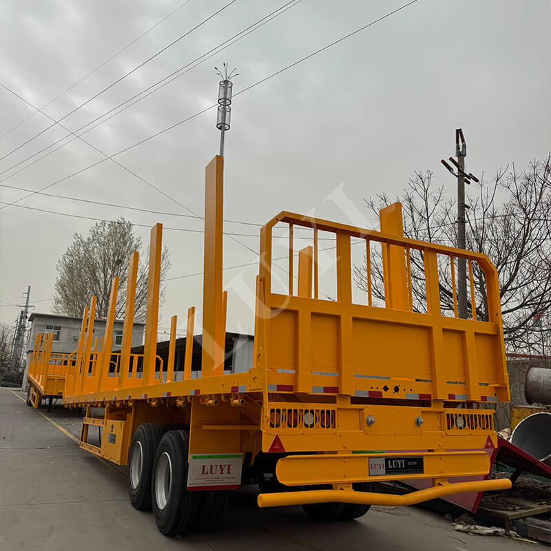 La semi-remorque plateau à 2 essieux de 40 tonnes avec montants, produite dans la province du Shandong, en Chine, est une toute nouvelle remorque de camion spécialement conçue pour le transport du bois. L'ensemble du véhicule est fabriqué en acier de haute qualité, doté d'une structure robuste et durable, avec une capacité de charge effective maximale de 40 tonnes, qui peut répondre de manière stable à divers besoins de transport de bois.
