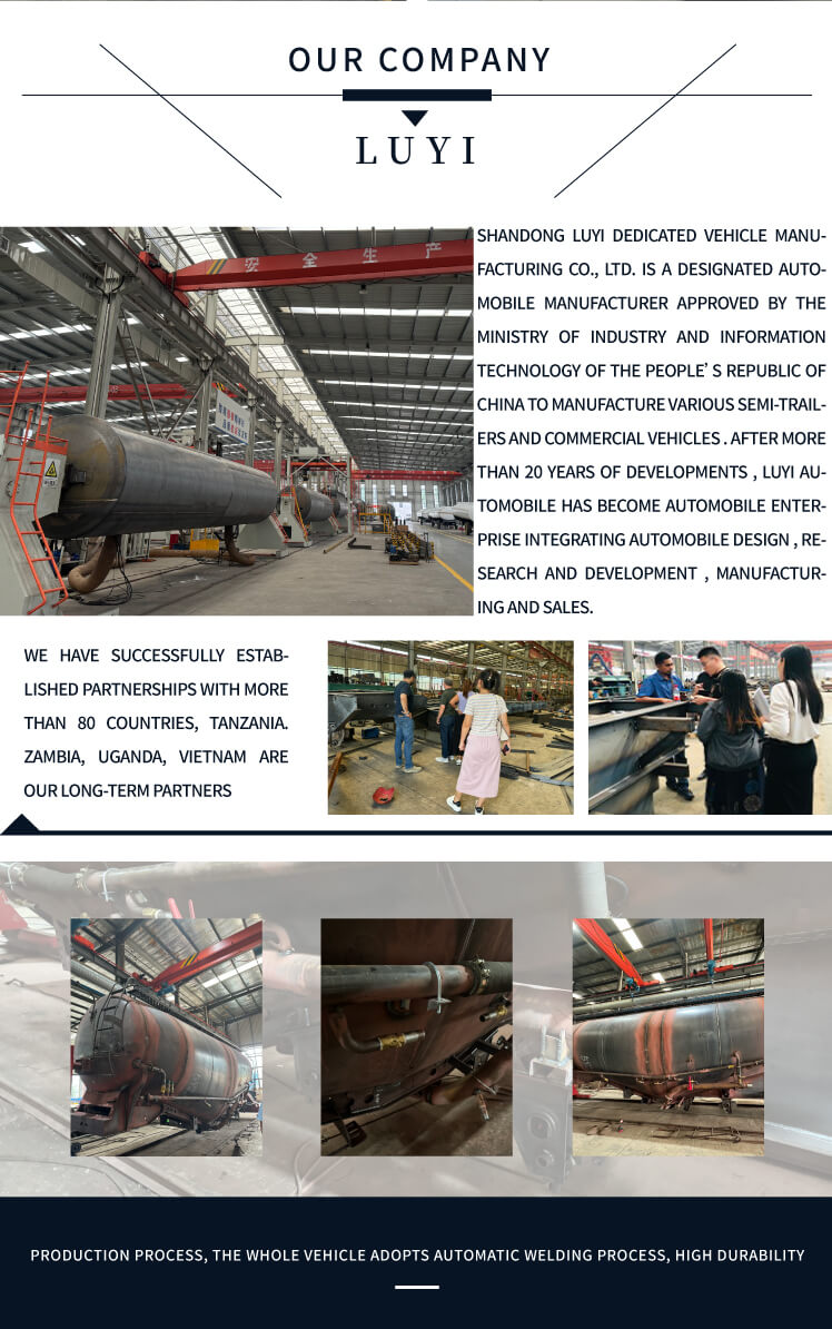 La semi-remorque citerne de ciment Luyi à 3 essieux et 35 mètres cubes, originaire de la province du Shandong, en Chine, est une semi-remorque de haute qualité spécialement construite pour le transport de ciment en vrac. Il a une capacité de chargement de 80 tonnes, une charge efficace allant de 60 tonnes à 80 tonnes et une charge efficace maximale de 80 000 kg, ce qui peut répondre efficacement aux besoins de transport de gros volumes.