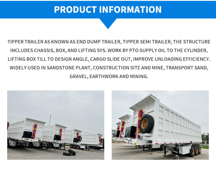 Semi-remorque hydraulique à décharge arrière à 3 essieux de 40 à 60 tonnes
