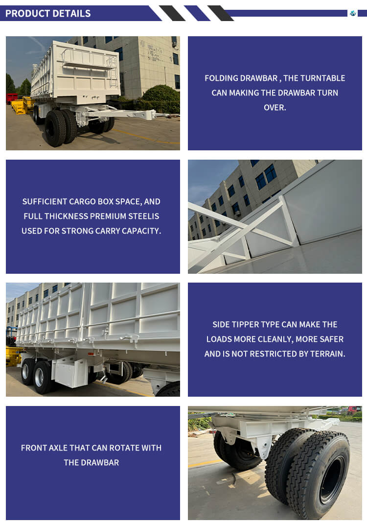 Balises actives: Remorque à benne basculante latérale à traction de transport de marchandises de 40 tonnes à 3 essieux