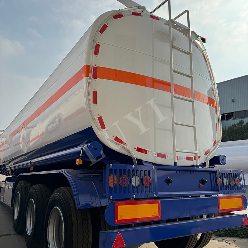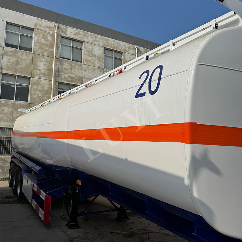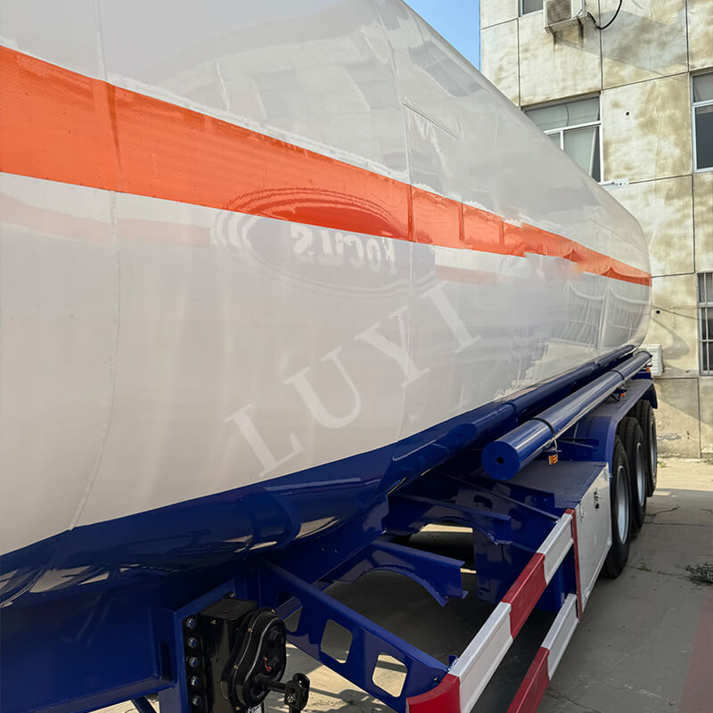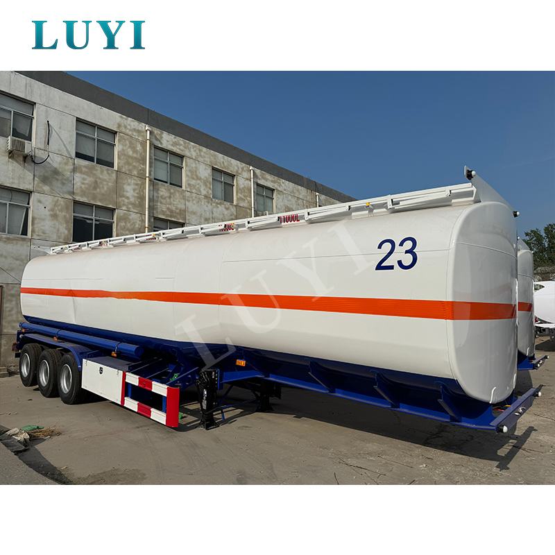 La semi-remorque citerne à huile à 3 essieux de 45 000 litres à 5 compartiments Luyi est une nouvelle remorque complète de type caisson robuste avec des spécifications de 12 500 × 2 500 × 3 600 mm, une capacité de chargement de 50 tonnes, adaptée au transport de diesel et d'autres liquides.