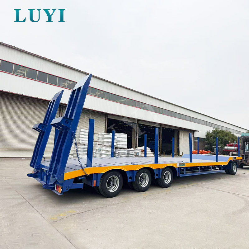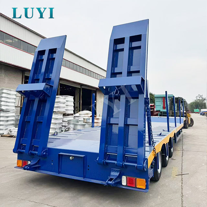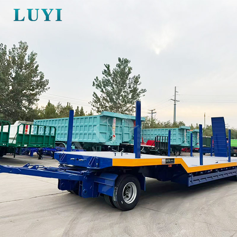 La semi-remorque surbaissée à 3 essieux LUYI est un véhicule de transport haute performance originaire du Shandong, en Chine, conçu pour le transport de marchandises lourdes comme les excavatrices.
