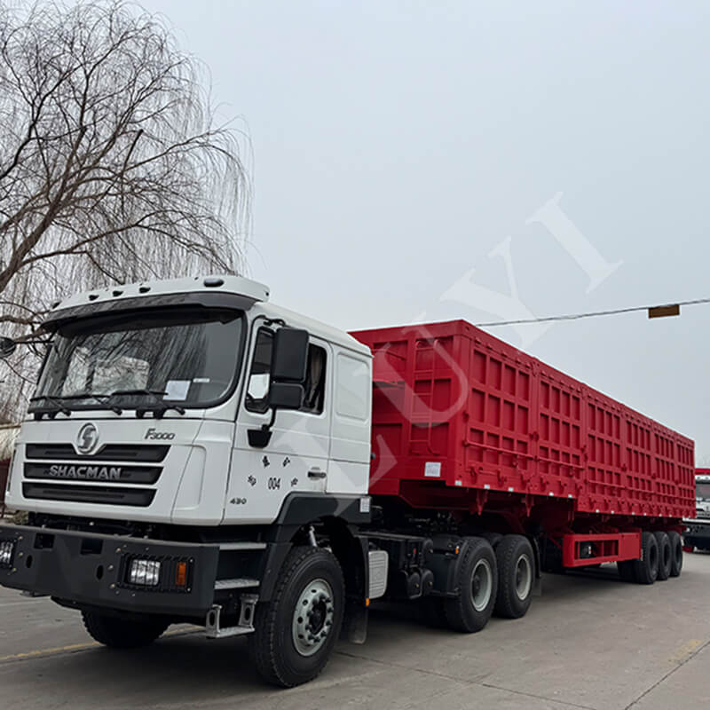 Originaire de la province du Shandong, en Chine, la semi-remorque à paroi latérale à benne basculante Luyi à 3 essieux de 60 à 80 tonnes est spécialement conçue pour le remorquage de camions, servant d'équipement performant pour le transport de marchandises lourdes. Construit en acier à haute résistance, il mesure 15 500 mm × 2 500 mm × 2 000 mm et présente une structure côté piquet, adaptée au chargement de divers types de marchandises.