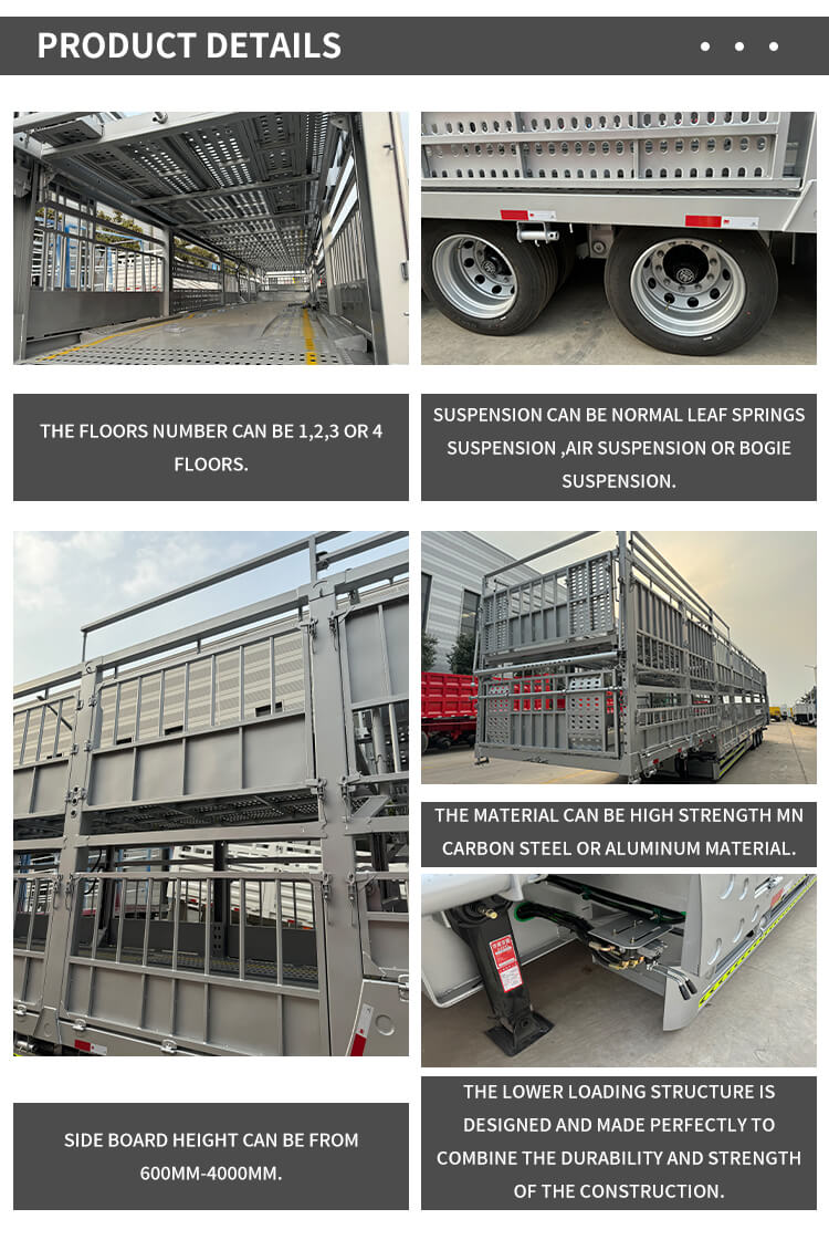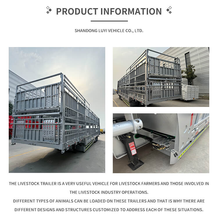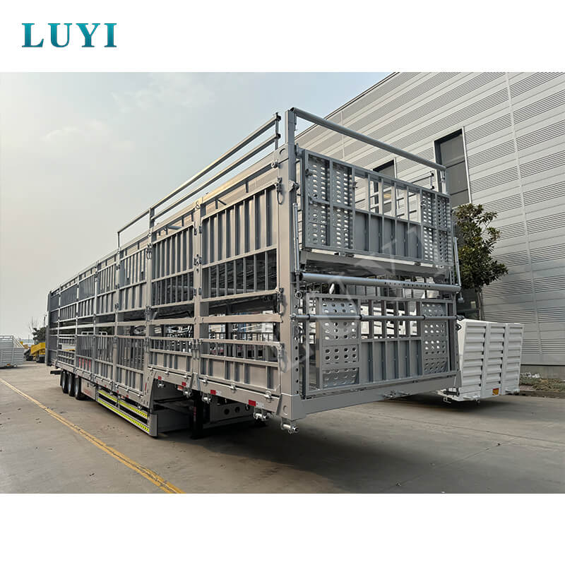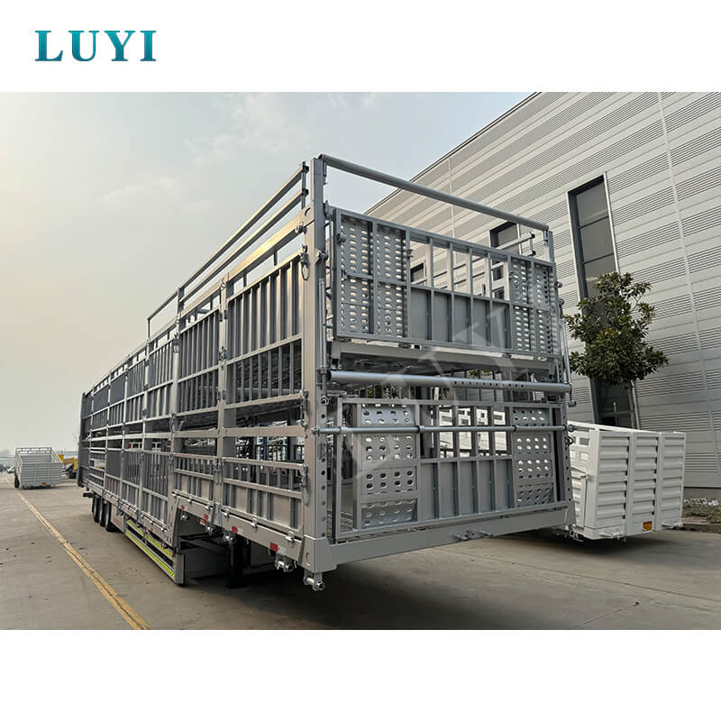 La semi-remorque à piquets double couche LUYI à 3 essieux et 60 tonnes, originaire de la province du Shandong, en Chine, est une semi-remorque de camion à haut rendement dédiée au transport de bétail et de marchandises en vrac. Elle détient plusieurs certifications, notamment ISO, CCC, BV, CE et DOT, garantissant une qualité conforme et fiable.