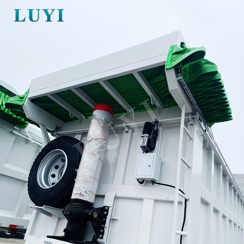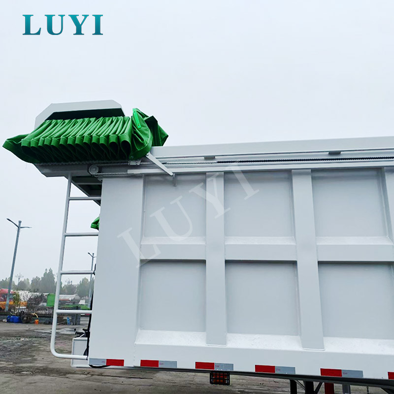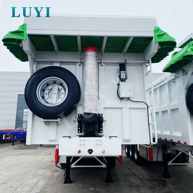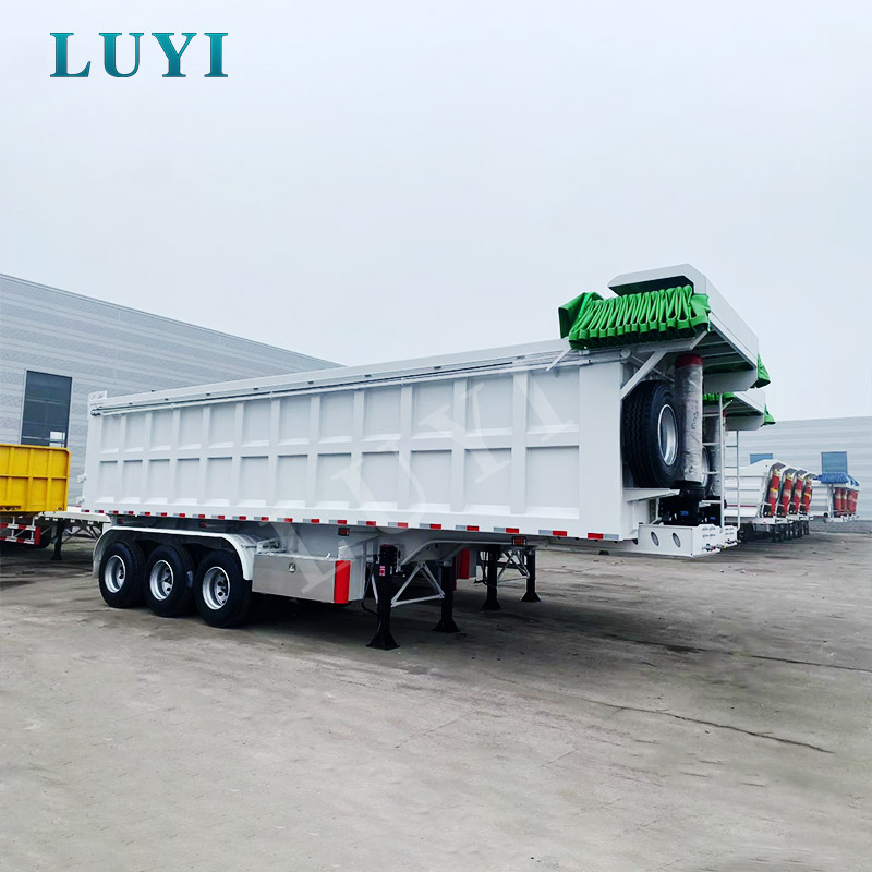 La semi-remorque benne basculante arrière blanche à 3 essieux de marque LUYI, issue d'une fabrication de haute qualité au Shandong, en Chine, est une remorque de camion efficace spécialement conçue pour le transport de charges lourdes. Le produit est fabriqué en acier à haute résistance, doté d'une structure stable et durable. Il a des dimensions de 1 300 mm × 2 500 mm × 4 000 mm et une capacité de charge maximale de 100 tonnes, répondant facilement aux besoins de transport de diverses marchandises lourdes.
