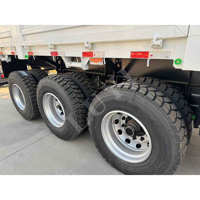 Le véhicule est principalement fabriqué en acier, dans un état neuf, avec une qualité fiable. Équipé d'une conception à 3 essieux, combinée à un système de suspension à ressorts à lames et à une suspension mécanique ou pneumatique en option, il assure stabilité et capacité de charge pendant la conduite, avec une capacité de charge allant jusqu'à 30 tonnes. Les spécifications de 12 500 x 2 500 x 2 100 mm offrent un espace de chargement suffisant, qui peut non seulement gérer le transport de marchandises en vrac, mais également s'adapter au transfert de conteneurs, avec un large éventail de scénarios d'application. Sa fonction d'auto-déchargement unique améliore considérablement l'efficacité du chargement et du déchargement des marchandises, réduisant ainsi les coûts de main-d'œuvre et le temps de chargement/déchargement. Que ce soit dans le transport de matériaux de construction ou la distribution de produits finis industriels, la semi-remorque à flancs Luyi à 3 essieux pour le transport de marchandises peut compter sur ses excellentes performances et sa qualité fiable pour devenir un assistant compétent dans le transport logistique.