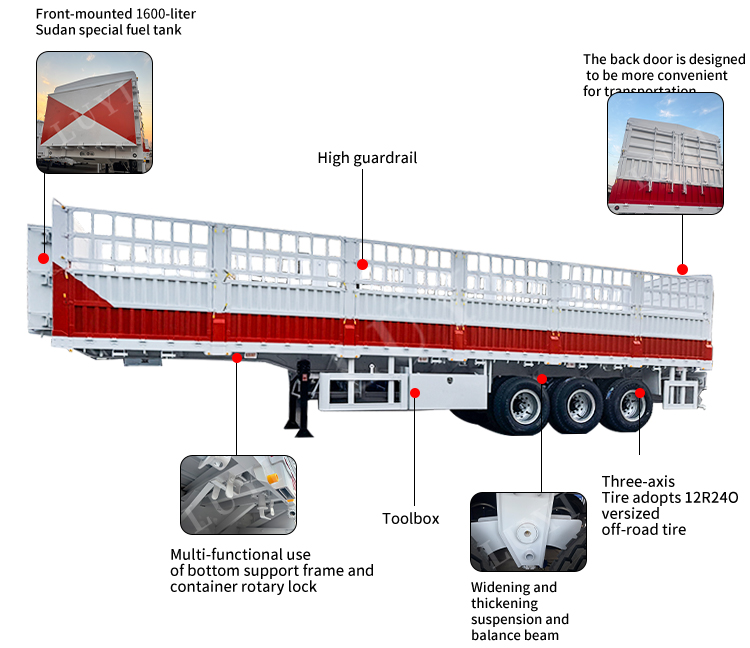 La semi-remorque à parois latérales à 3 essieux LUYI est une bête de somme de transport robuste conçue pour les besoins de fret en vrac, disponible en capacités de charge de 50T, 60T et 80T. Mesurant 1 550 025 504 000 mm, il est doté d'une carrosserie en acier robuste et est livré avec deux options de suspension : une suspension mécanique pour une durabilité économique et une suspension pneumatique pour une conduite plus douce sur des routes accidentées. Équipé de 12 pneus 12r22.5 et d'essieux haut de gamme de Feichi, BPW ou Fuwa, il garantit des performances stables même sous charge maximale.