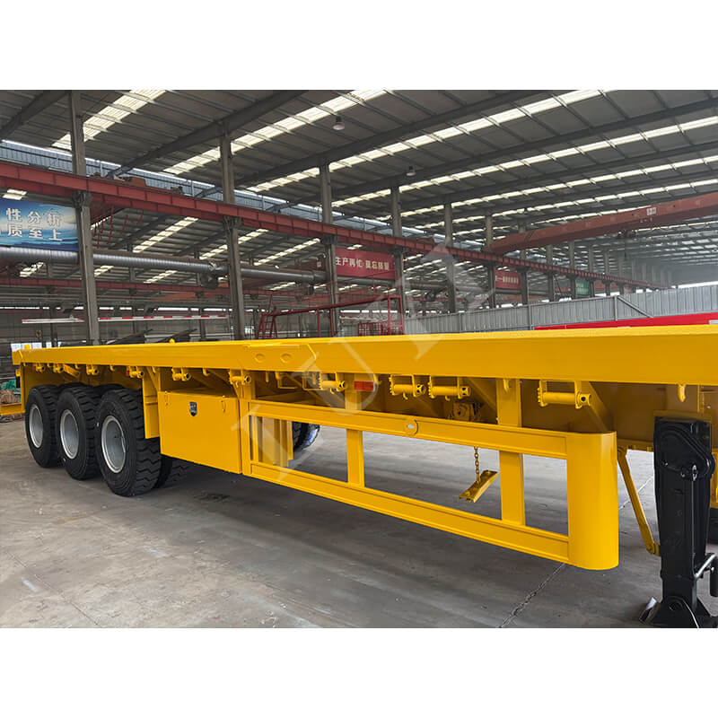 L'ensemble du corps est en acier de haute qualité, doté d'une structure robuste et durable avec une forte résistance à l'usure et à la déformation, capable de s'adapter pendant longtemps aux environnements de transport complexes. Le véhicule est équipé de 3 essieux de marque de 13 tonnes, associés à des pneus de spécification 12R22.5 et à une suspension mécanique, assurant une excellente stabilité de conduite et un déplacement en douceur même dans différentes conditions routières. Les stabilisateurs standard de 28 tonnes offrent un support stable pour les opérations de chargement et de déchargement, et le pivot d'attelage propose deux options : 2 pouces (50 mm) et 3,5 pouces (90 mm), qui sont compatibles avec la plupart des tracteurs. De plus, la couleur peut être personnalisée en fonction des besoins du client, répondant ainsi pleinement aux préférences d'utilisation personnalisées et facilitant un transport efficace.