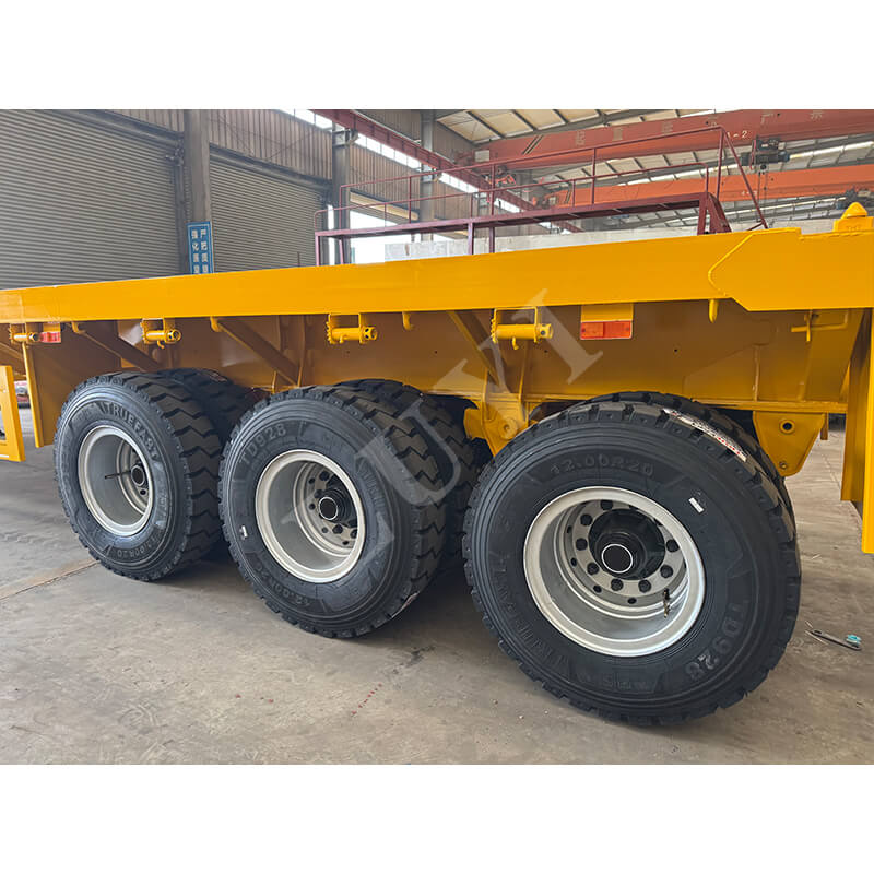 La semi-remorque plateau à 3 essieux Luyi d'une capacité de charge de 40 tonnes, originaire de la province du Shandong, en Chine, est un choix fiable pour le transport lourd. En tant que toute nouvelle semi-remorque à plateau, sa charge utile maximale effective dépasse 30 000 kilogrammes, dépassant de loin les exigences de charge conventionnelles, et peut facilement gérer diverses tâches de transport de marchandises lourdes.