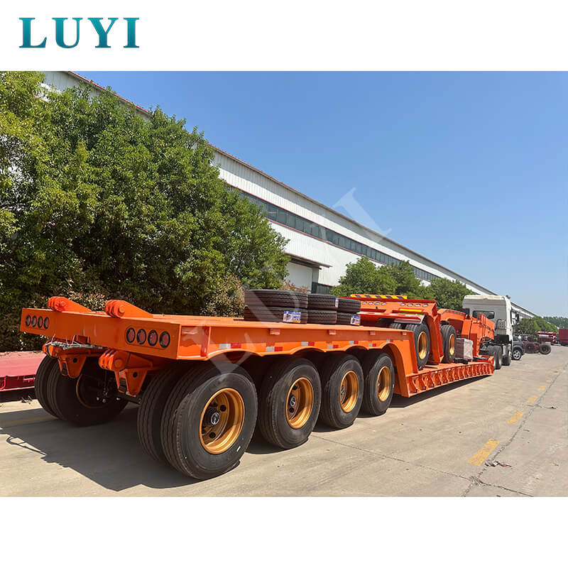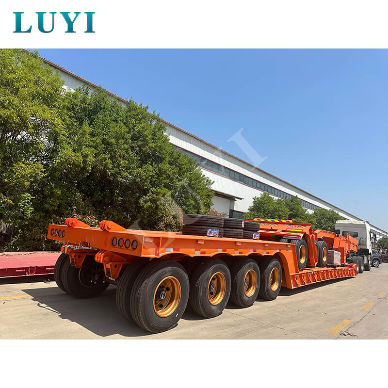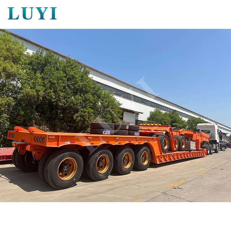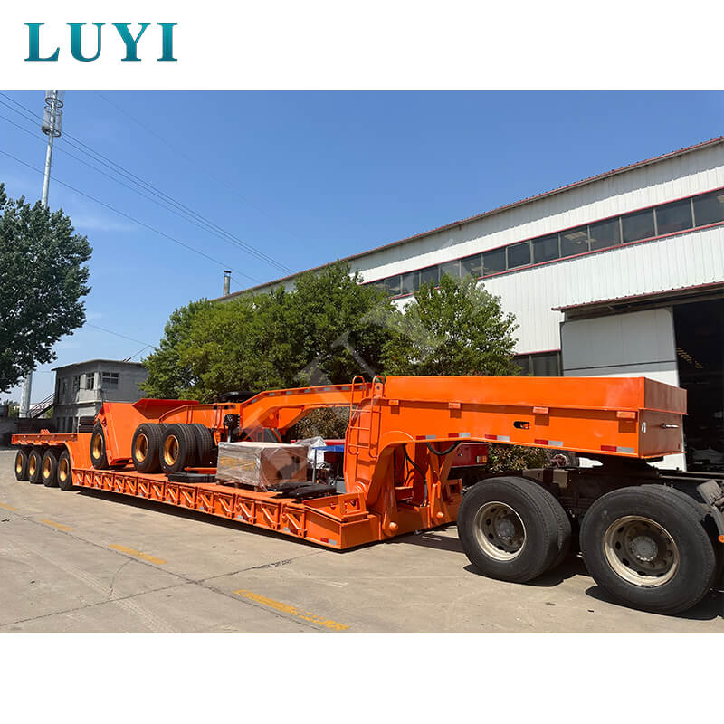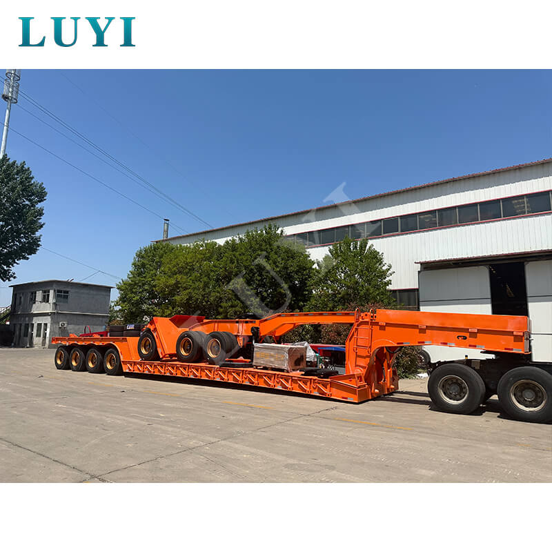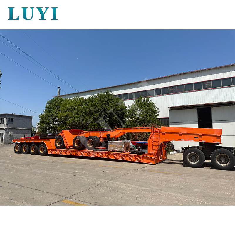 La semi-remorque surbaissée à col de cygne à 4 essieux et 100 tonnes de LUYI VEHICLE est une remorque de camion haute performance originaire de la province du Shandong, en Chine. Fabriquée en acier de haute qualité, sa poutre principale est en acier T700/Q345, assurant une structure robuste et durable. Avec une capacité de charge de 100 à 120 tonnes et une charge utile effective maximale de 120 000 kg, il répond facilement aux besoins de transport lourd.
