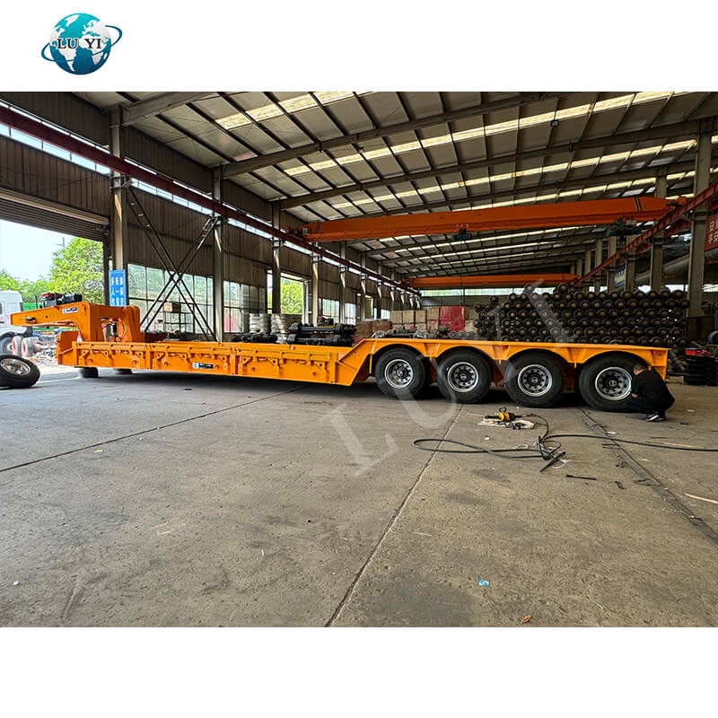 La toute nouvelle semi-remorque surbaissée Luyi à 4 essieux et 100 tonnes, fabriquée en acier et originaire de la province du Shandong, en Chine, est spécialement conçue pour le transport de marchandises lourdes. Il convient au remorquage de camions et est principalement utilisé pour transporter des machines et des équipements lourds. Avec des dimensions de 17 000 × 3 000 × 1 800 mm, il adopte une configuration à 4 essieux (marques ZY/Fuhua/BPW en option) et a une charge utile maximale de 100 tonnes, offrant de puissantes performances de charge.