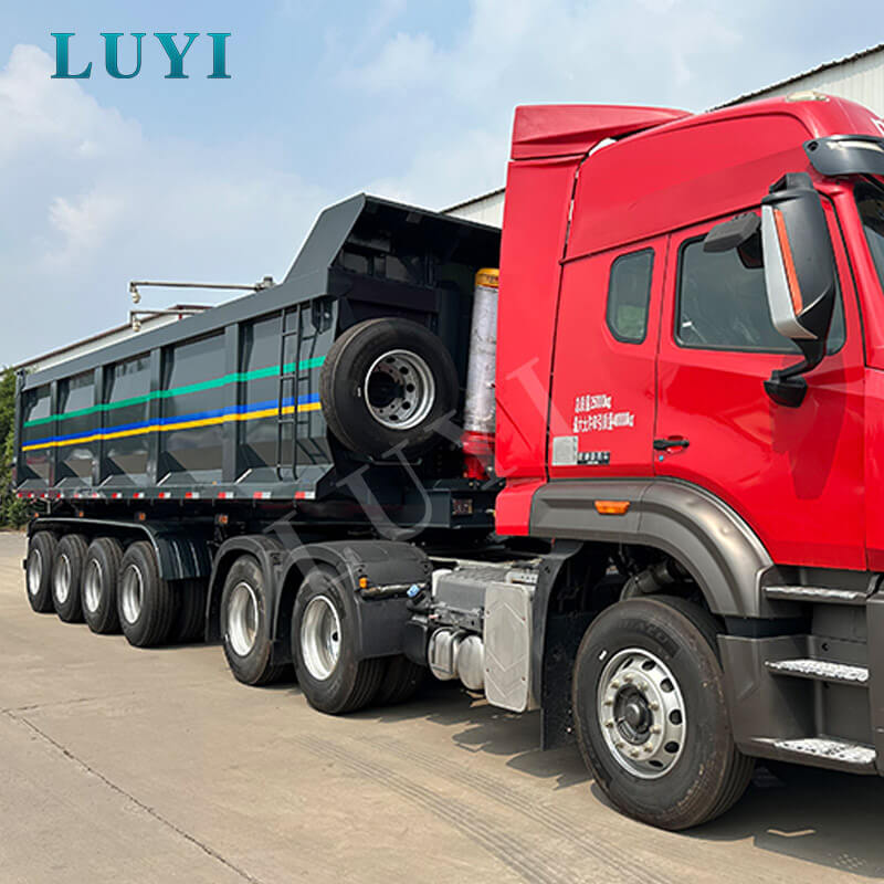 La semi-remorque hydraulique à benne arrière en forme de U à 4 essieux de 100 tonnes de LUYI, originaire du Shandong, en Chine, est un outil dédié au transport de marchandises en vrac telles que le sable, le gravier et le charbon. Construit en acier au carbone de haute qualité, il a des dimensions précises de 12 050 x 2 550 x 3 600 mm et une capacité de charge maximale de 100 tonnes, dont les performances puissantes répondent aux besoins du transport lourd.