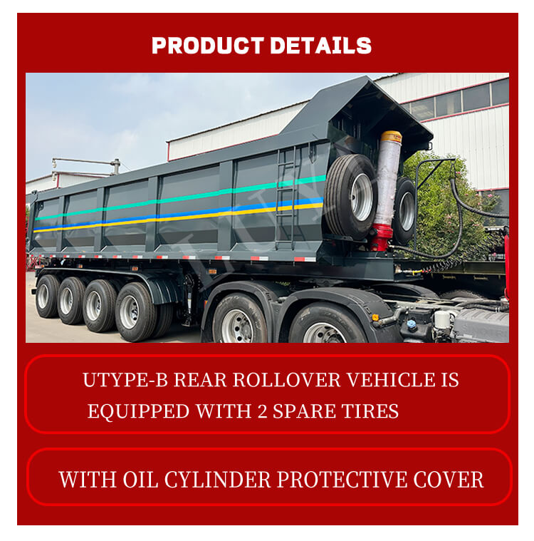 Balises actives: Semi-remorque hydraulique à déchargement arrière de type U à 4 essieux de 100 tonnes