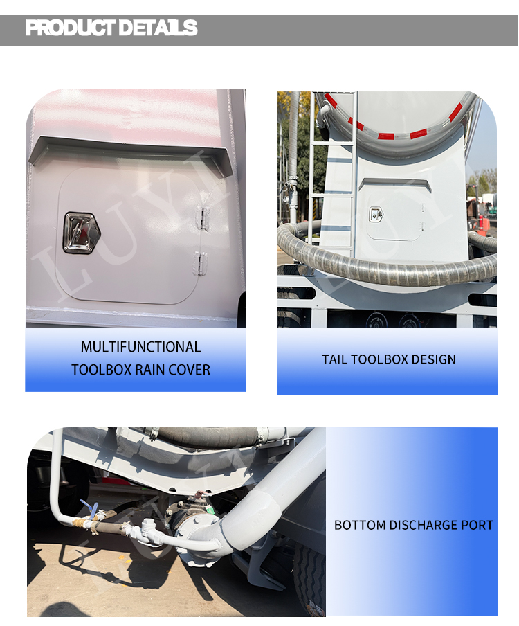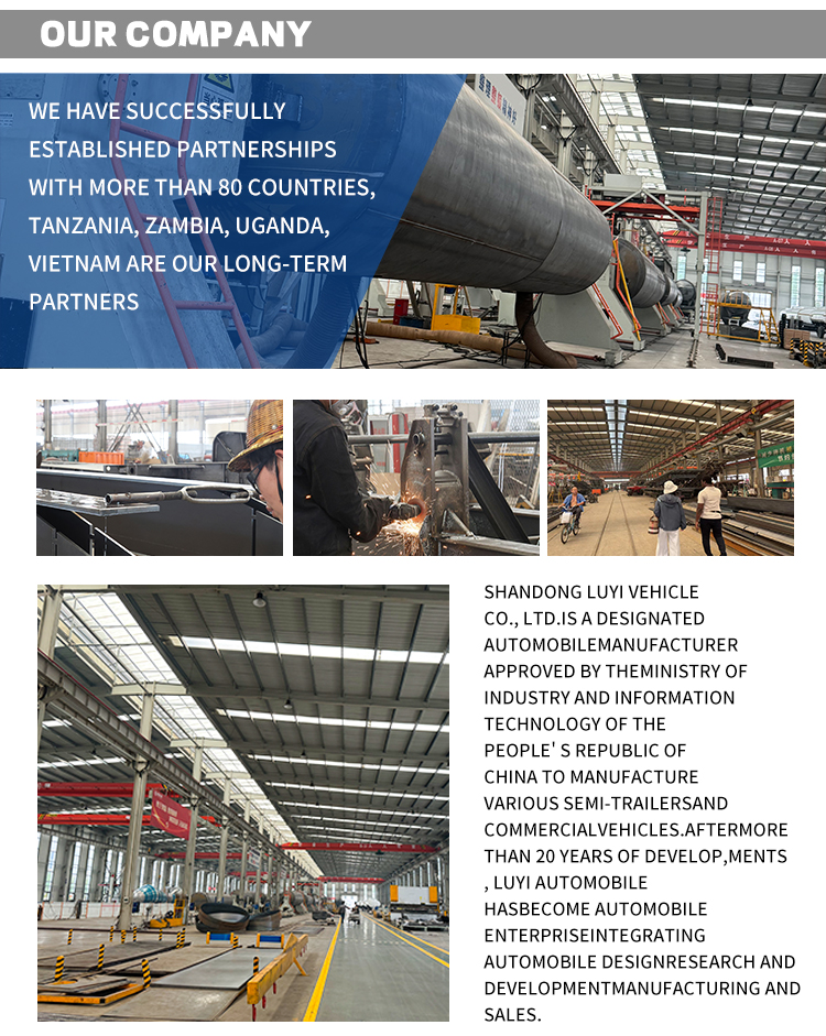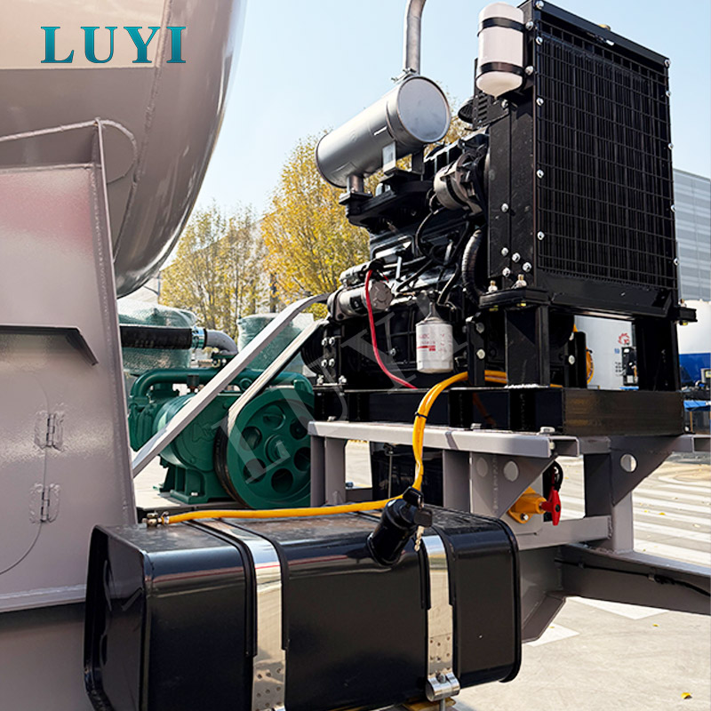 Présentation de la semi-remorque-citerne de poudre LUYI à 4 essieux et 40 mètres cubes, une solution de transport de ciment en vrac haute performance fièrement conçue à Shandong, en Chine. En tant que toute nouvelle semi-remorque dédiée au transport de poudre de ciment en vrac, elle possède une structure en acier robuste qui garantit durabilité et fiabilité même dans des conditions difficiles.