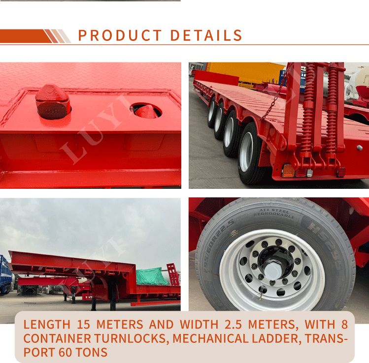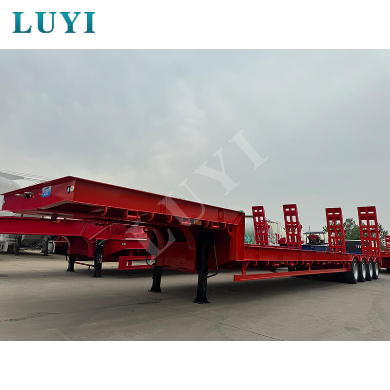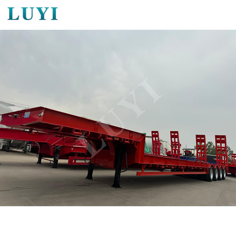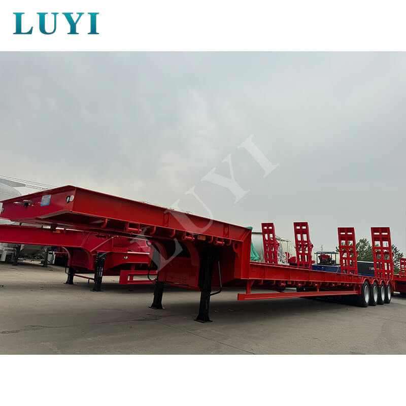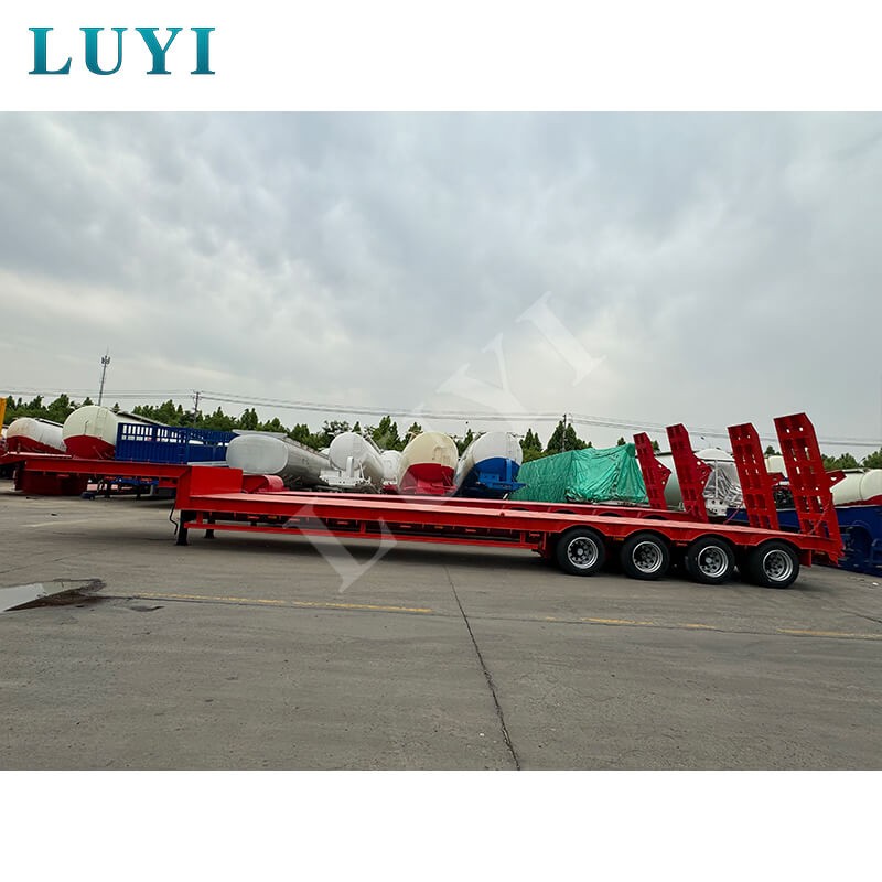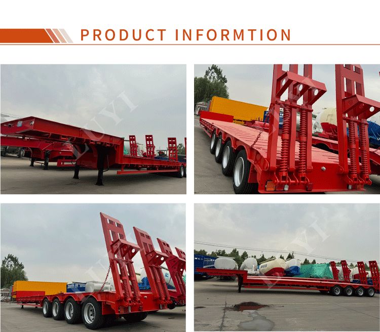 La semi-remorque surbaissée Luyi à 4 essieux et 60 tonnes à col de cygne, produite dans la province du Shandong, en Chine, est une remorque de camion dédiée au transport de marchandises lourdes. La carrosserie de la remorque est fabriquée en acier de haute qualité et présente une structure robuste et durable. Sa charge utile maximale effective dépasse non seulement 30 000 kg mais atteint également 100 tonnes, transportant facilement diverses marchandises lourdes et répondant aux besoins de transport de haute intensité.