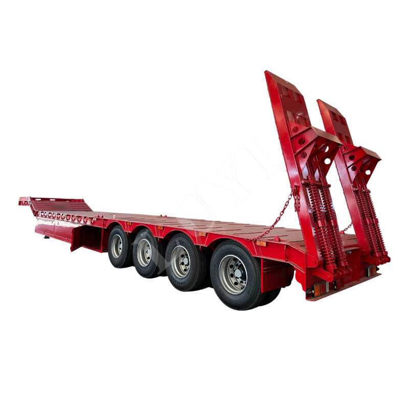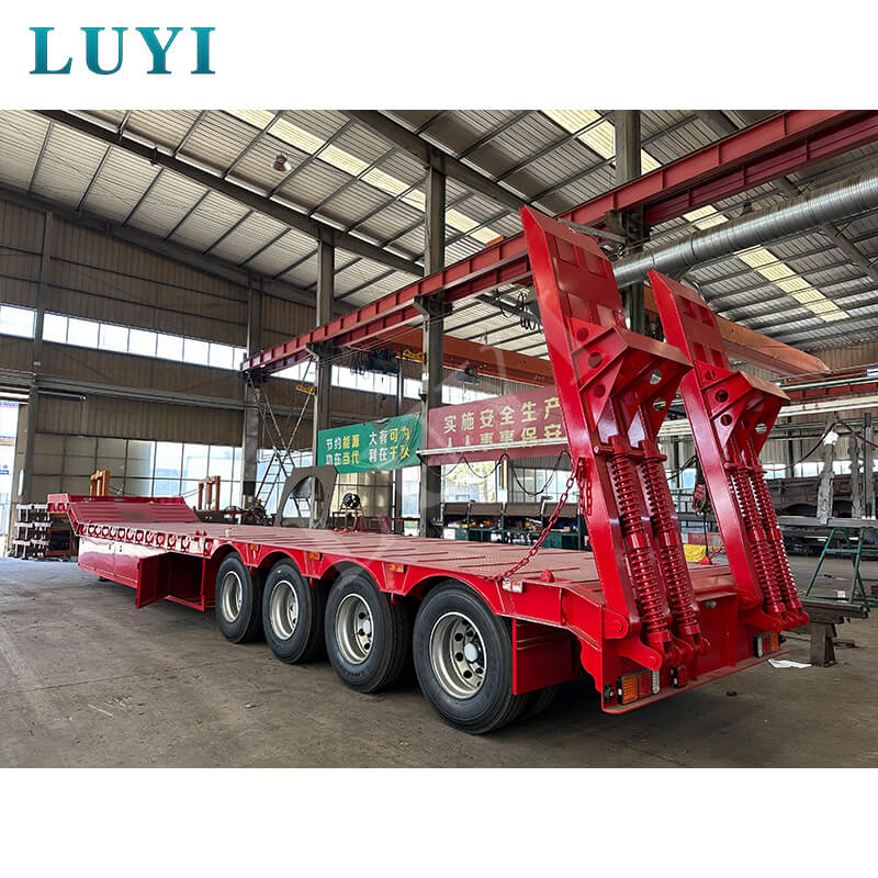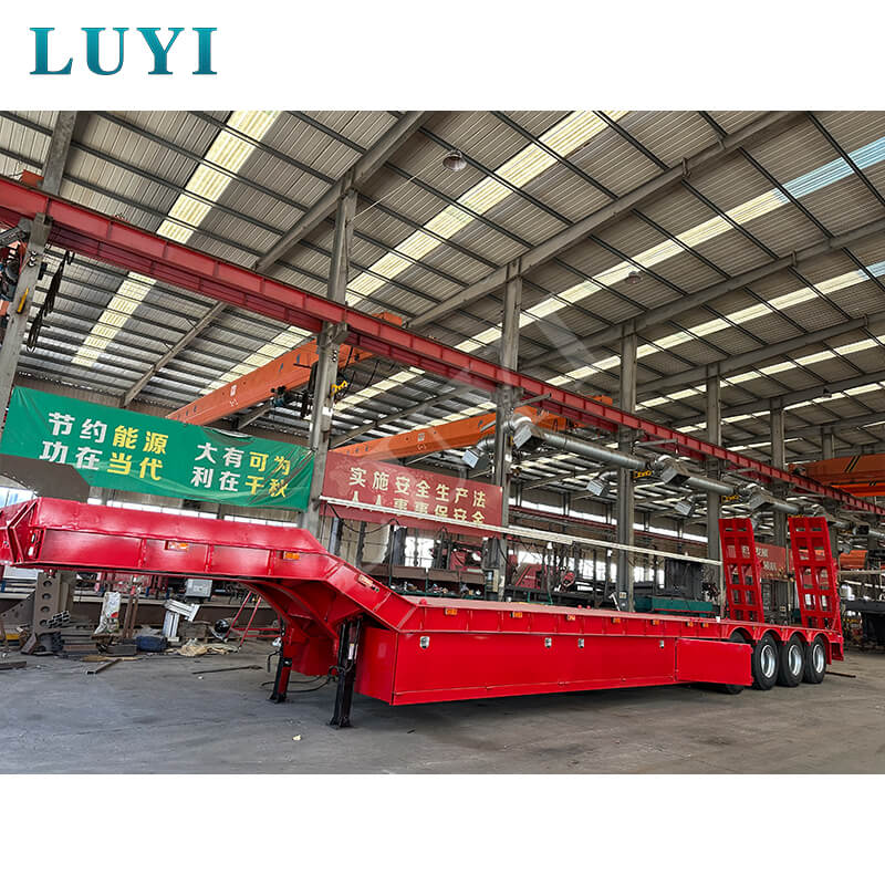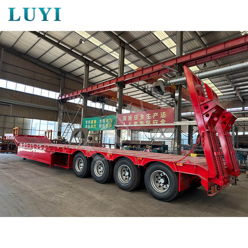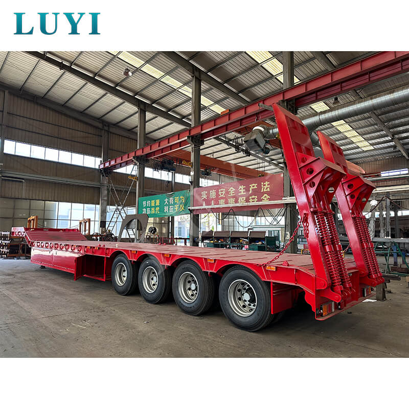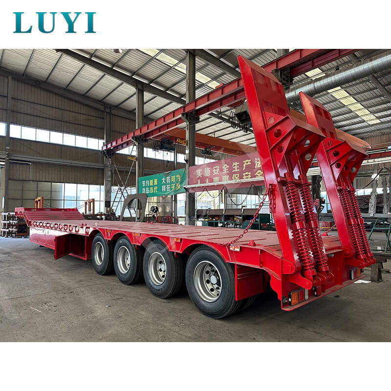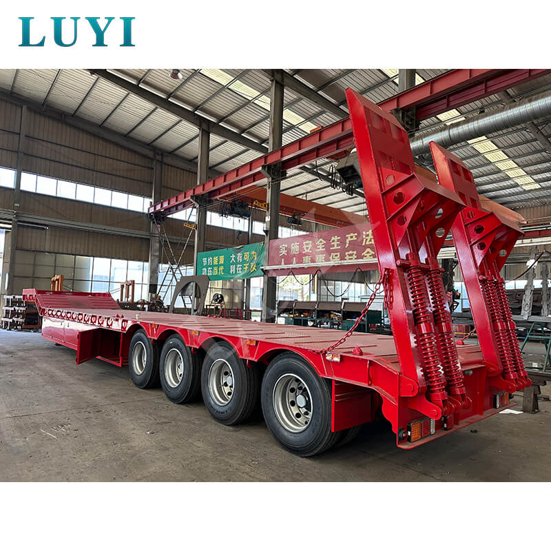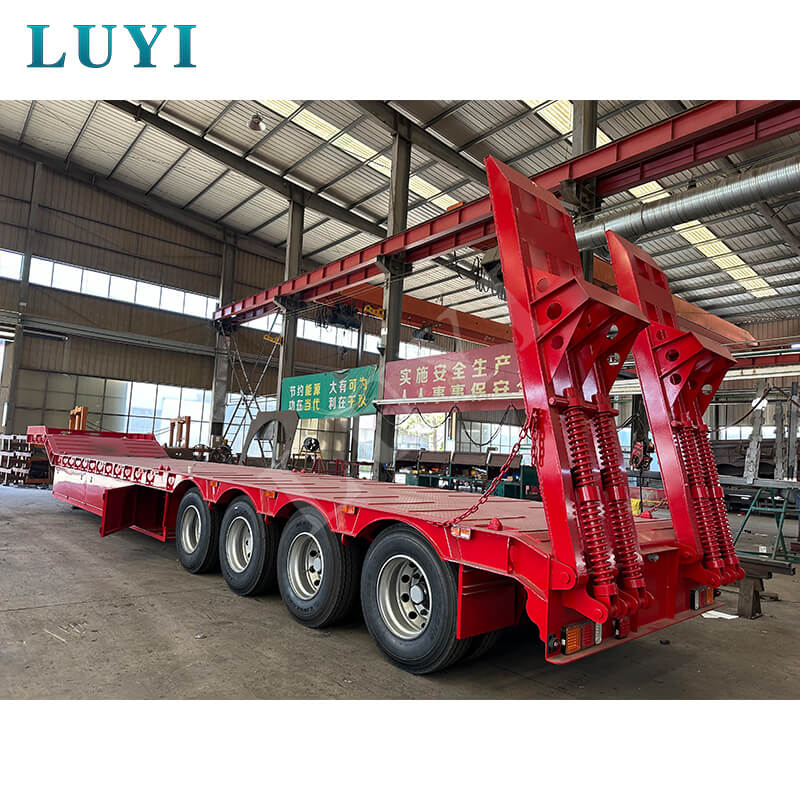 La semi-remorque Luyi surbaissée à 4 essieux et 60 tonnes, originaire de la province du Shandong, en Chine, est une remorque de camion haute performance spécialement conçue pour le transport d'équipements lourds, de marchandises conteneurisées et de machines. Equipé d'une échelle hydraulique, il permet un chargement et un déchargement pratiques et efficaces.