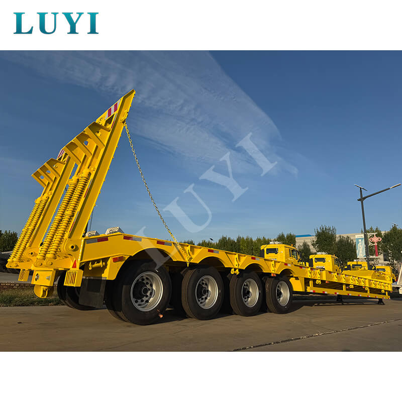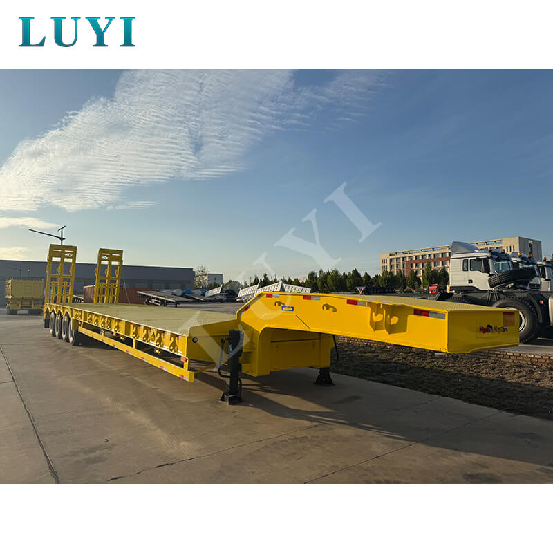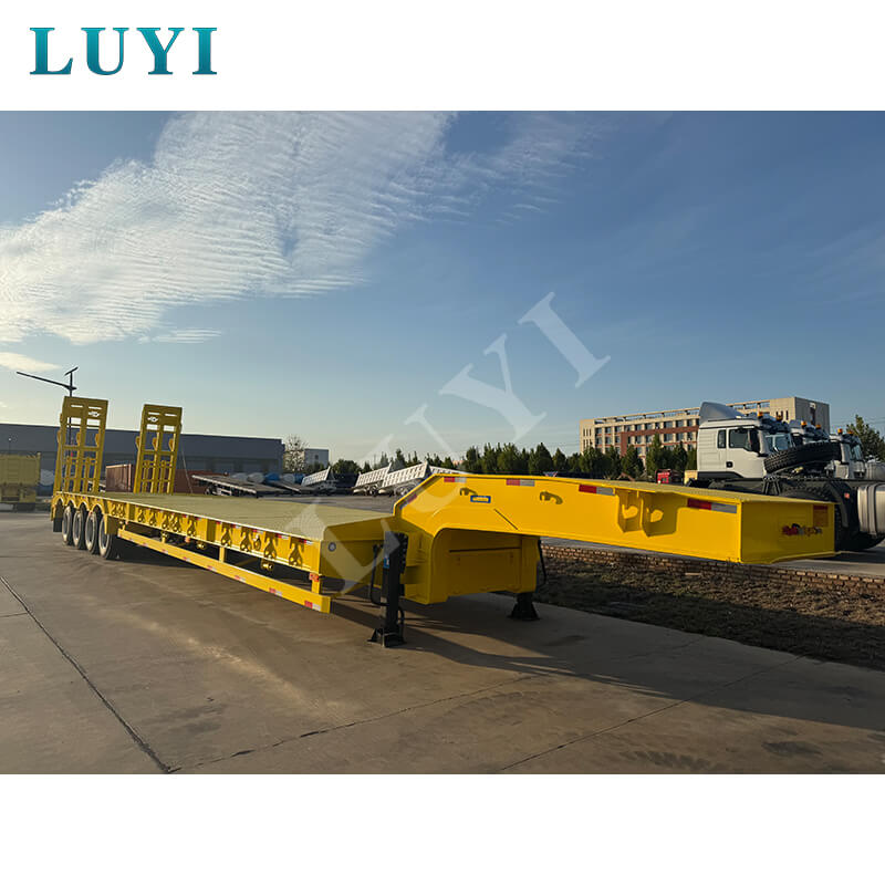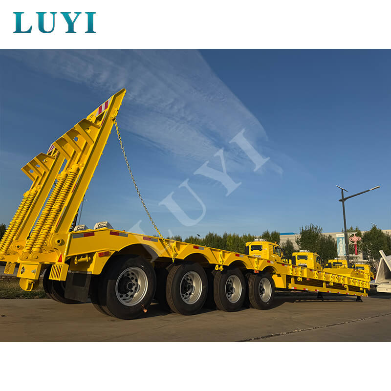 La remorque surbaissée à col de cygne personnalisée à 4 essieux et 80 tonnes Luyi, originaire de la province du Shandong, en Chine, est une toute nouvelle semi-remorque professionnelle. Avec une charge effective maximale de plus de 30 000 kg, il convient aux scénarios de remorques de camion et peut transporter efficacement des marchandises lourdes.