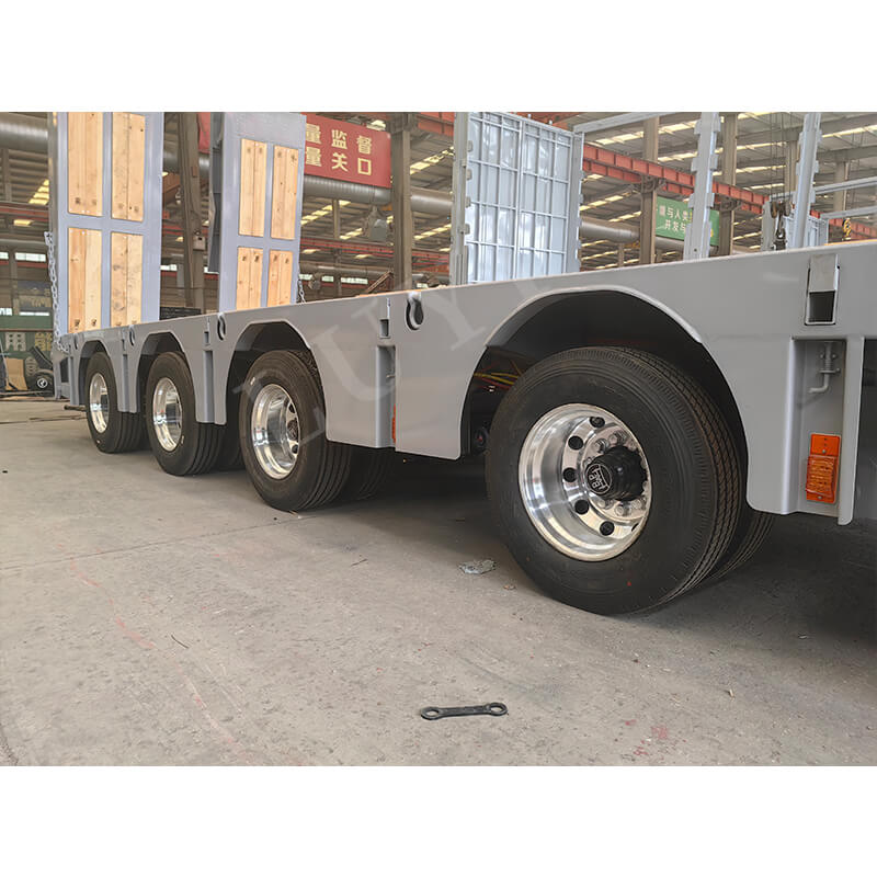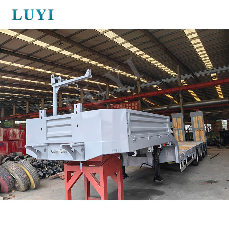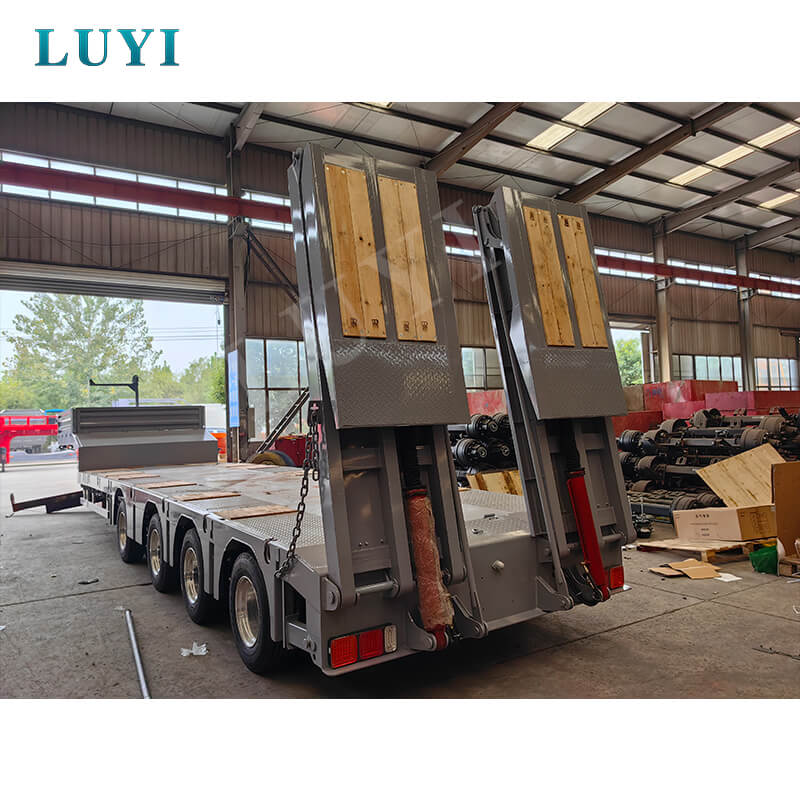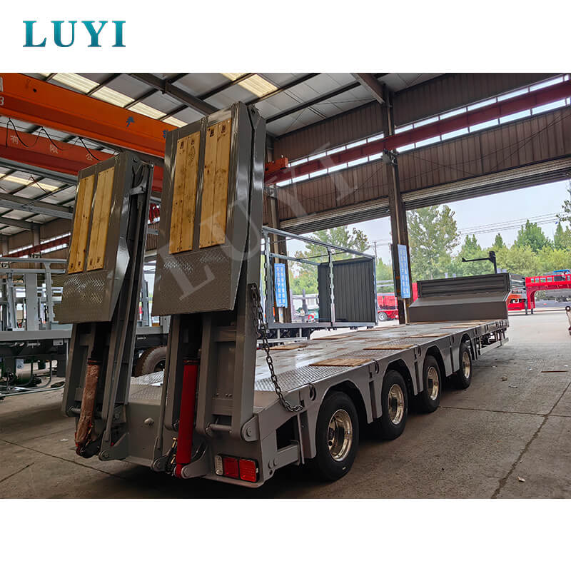 La semi-remorque hydraulique surbaissée Luyi à 4 essieux et 80 tonnes, originaire de la province du Shandong, en Chine, est une semi-remorque de haute qualité conçue spécifiquement pour le transport de marchandises lourdes.