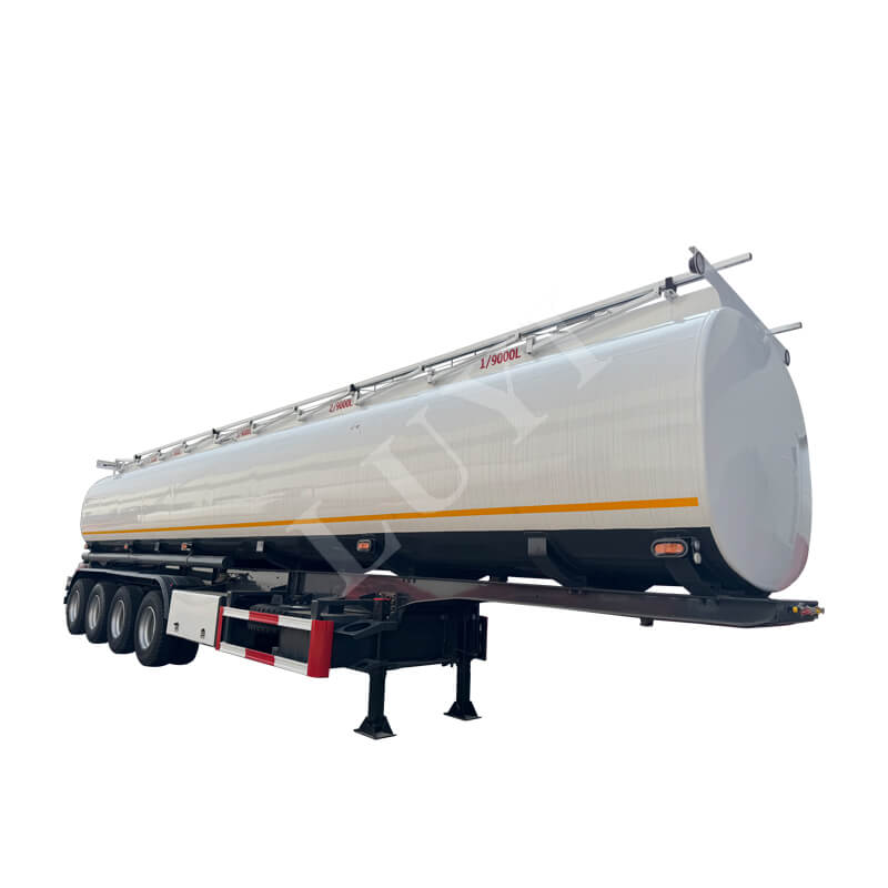 Le système de suspension offre deux options de suspension mécanique et de suspension pneumatique, associées à des pneus 12R22.5 pour une forte stabilité de conduite. Il est équipé de pieds de support standard de 28 tonnes et de pivots d'attelage de 2 pouces (50 mm) ou 3,5 pouces (90 mm), compatibles avec divers tracteurs pour une utilisation facile. Les couleurs peuvent être personnalisées en fonction des exigences du client, équilibrant praticité et personnalisation, ce qui en fait un choix fiable dans le domaine du transport de carburant sur de longues distances.