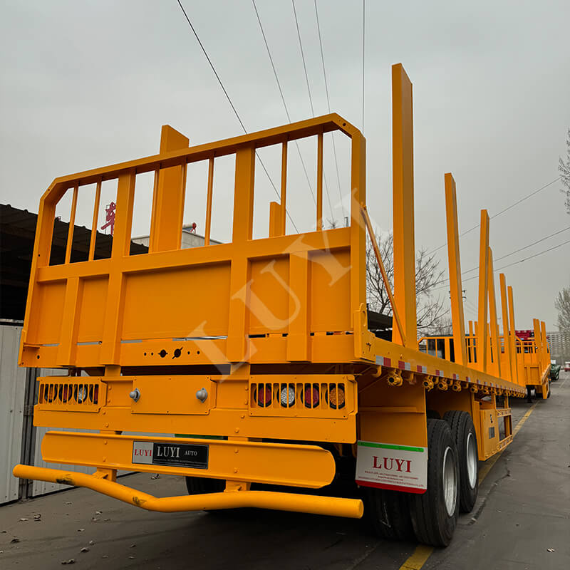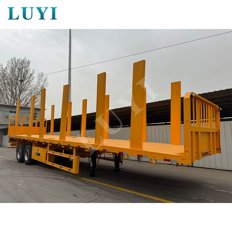La remorque plateau à colonnes à 2 essieux de 40 tonnes de LUYI est conçue pour le transport du bois avec de nombreuses options de personnalisation. Ajustez la hauteur du buffet (30 à 80 cm disponible) pour s'adapter aux bûches, au bois d'œuvre ou à d'autres produits en bois, et choisissez entre des plateaux en acier à carreaux ou des plateaux à revêtement antidérapant pour une meilleure adhérence.