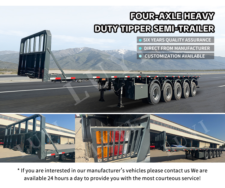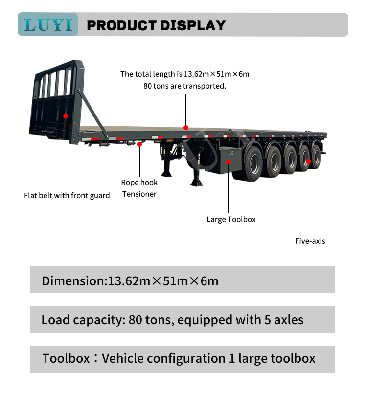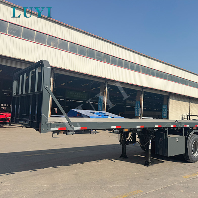 Originaire du Shandong, en Chine, une base de fabrication haut de gamme, la semi-remorque plateau légère à 5 essieux LUYI est conçue sur mesure pour le transport de matériaux de construction, servant de partenaire fiable dans le secteur de la logistique d'ingénierie......