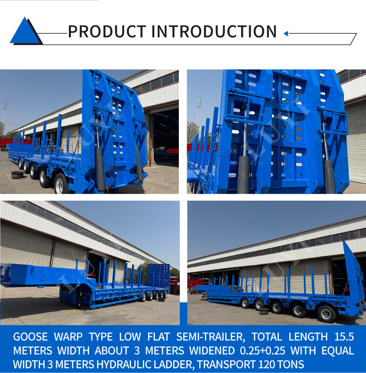 Balises actives: Camion surbaissé robuste à 5 essieux de 60 tonnes, semi-remorque surbaissée rétractable