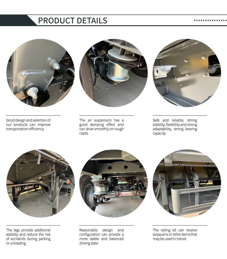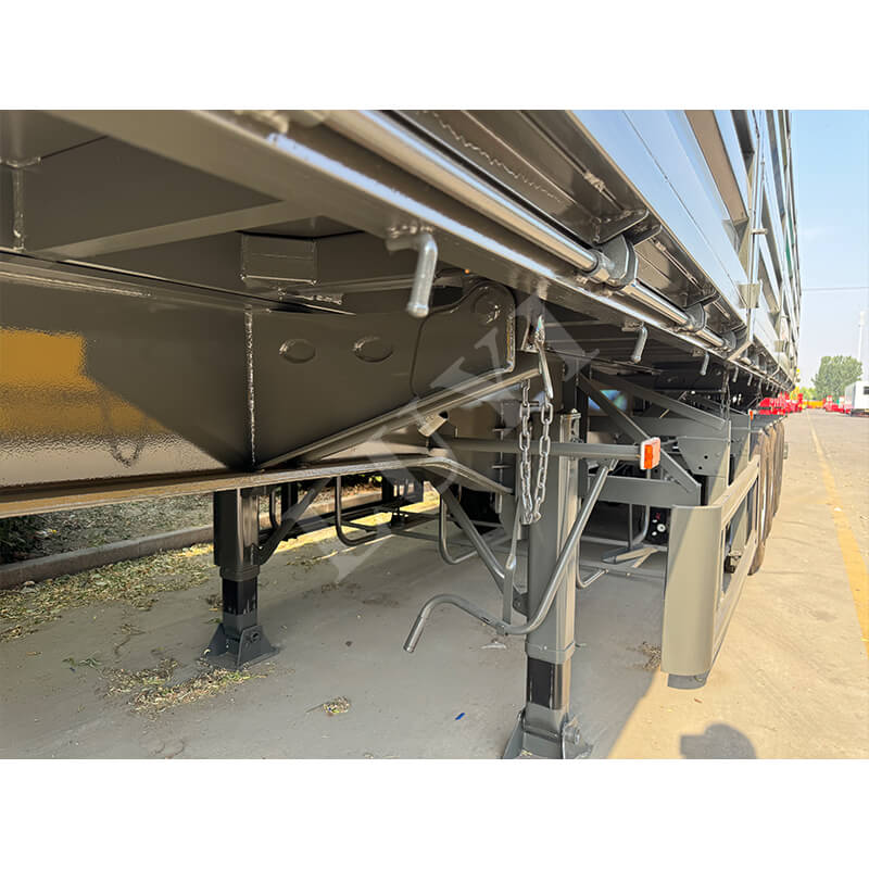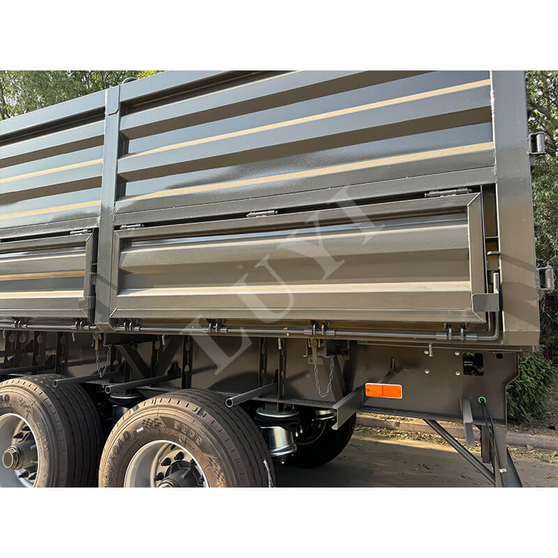La semi-remorque à benne latérale à 4 essieux de classe LUYI de 60 tonnes est personnalisée pour le transport de marchandises lourdes en vrac dans des scénarios tels que les mines et les projets d'infrastructure. Il adopte une structure de déchargement hydraulique à basculement latéral, permettant un déchargement rapide dans des espaces étroits et une vidange complète des compartiments en quelques minutes, améliorant considérablement l'efficacité de la rotation du fret. Les principaux composants porteurs sont fabriqués en acier durable à haute résistance, associés à une conception à 4 essieux et à des airbags à suspension pneumatique. Cela répartit non seulement la pression des charges lourdes de 60 tonnes et répond aux exigences réglementaires, mais ajuste également la dureté d'absorption des chocs en fonction de la charge, réduisant ainsi les secousses de la cargaison et l'impact de la route. L'ensemble du véhicule allie déchargement efficace, durabilité des charges lourdes et stabilité de conduite, ce qui en fait un choix fiable pour le transport de marchandises en vrac lourdes.