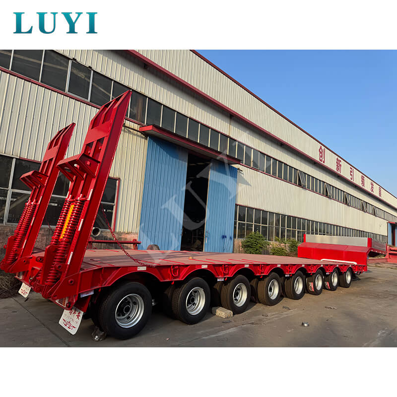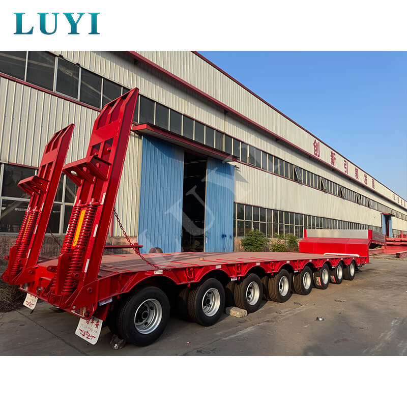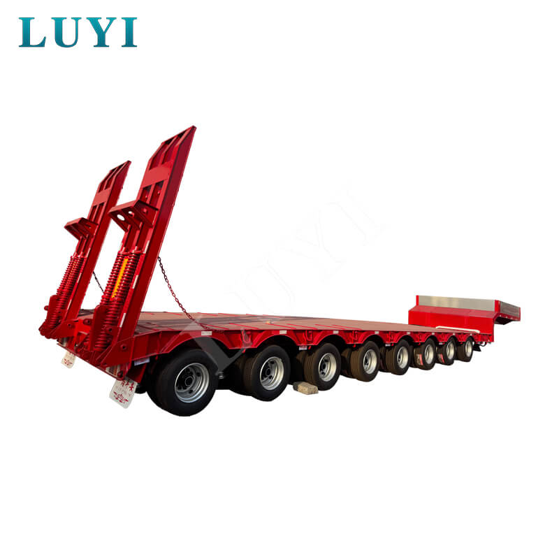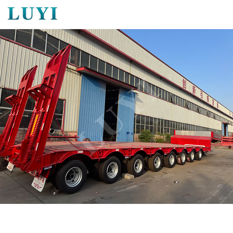 La semi-remorque hydraulique surbaissée avec chargeur Luyi à 8 essieux de 150 tonnes et 40 pieds, originaire de la province du Shandong, en Chine, est une semi-remorque de haute qualité spécialement conçue pour le transport de marchandises lourdes. Fabriqué en acier de haute qualité, il allie robustesse et durabilité, avec une charge utile effective maximale de 100 tonnes et une capacité de charge maximale de 150 tonnes, répondant facilement aux divers besoins de transport lourd.
