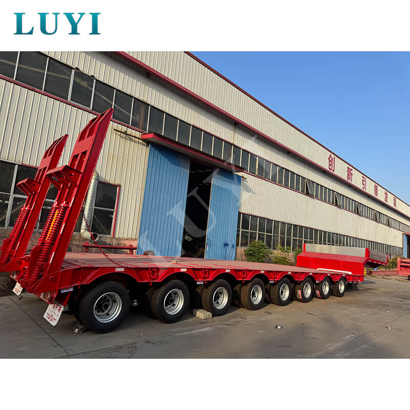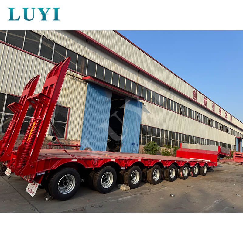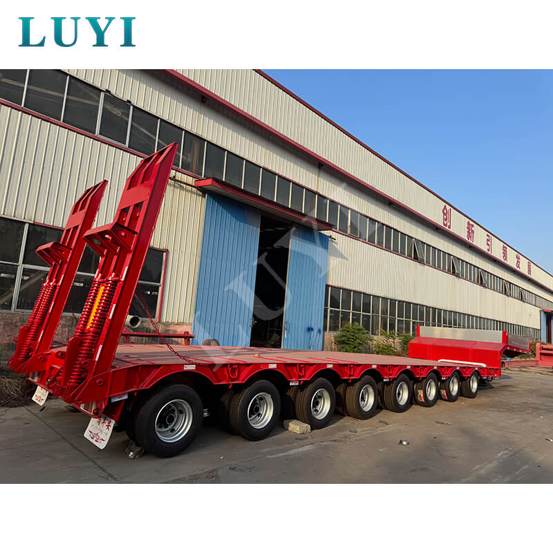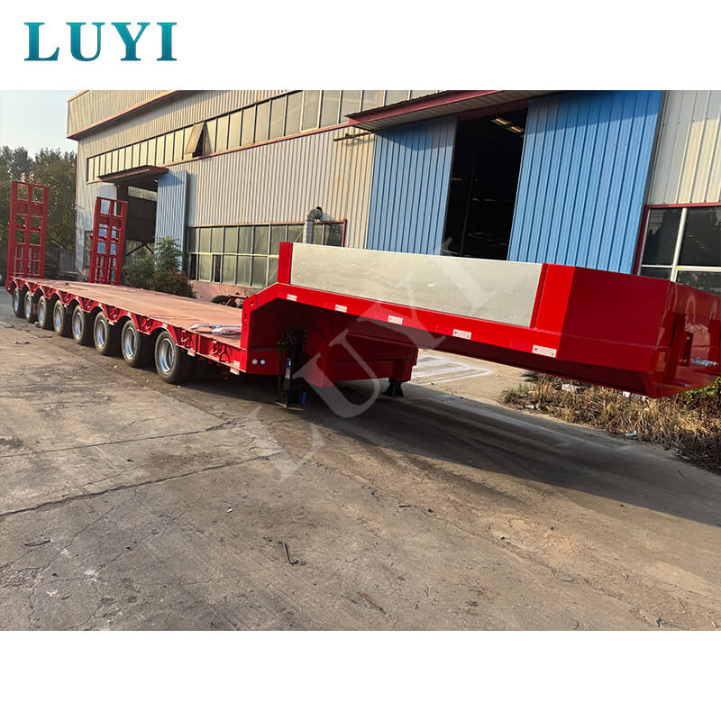 La semi-remorque hydraulique surbaissée avec chargeur Luyi à 8 essieux de 150 tonnes et 40 pieds, originaire de la province du Shandong, en Chine, est une semi-remorque de haute qualité spécialement conçue pour le transport de marchandises lourdes. Fabriqué en acier de ......