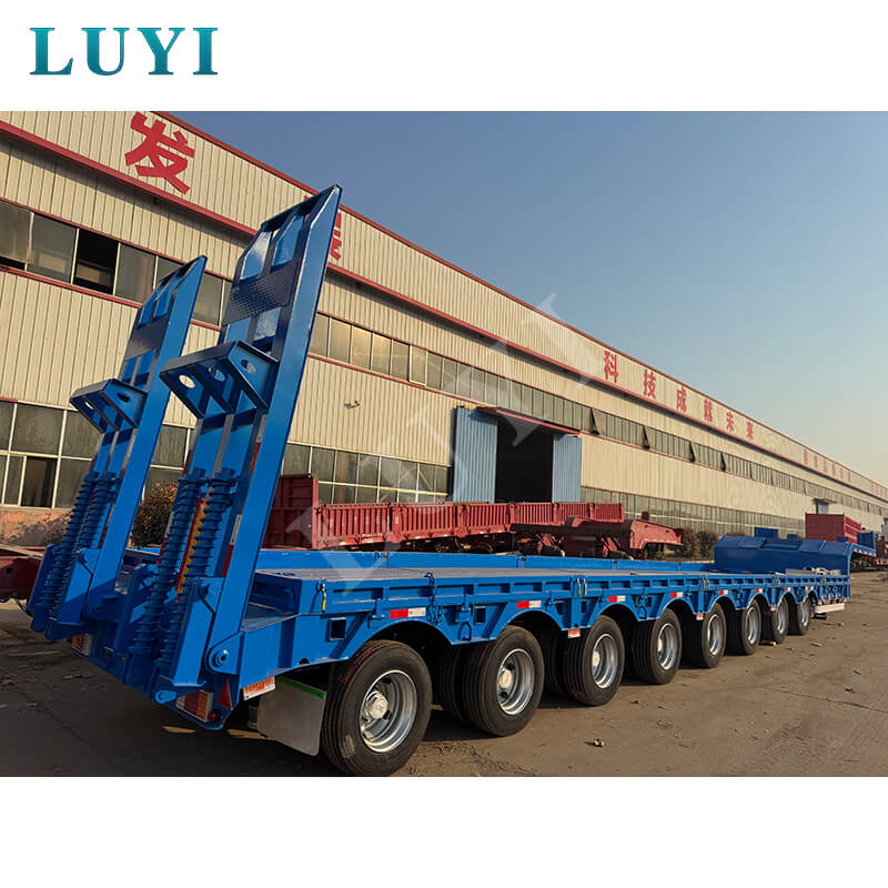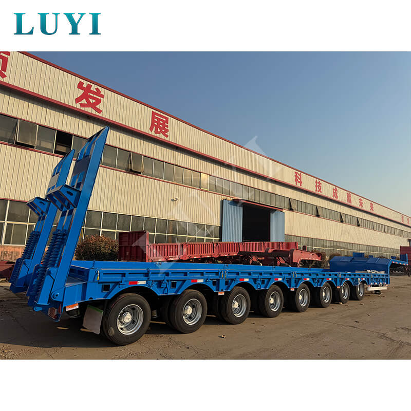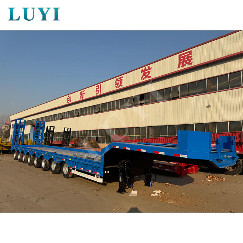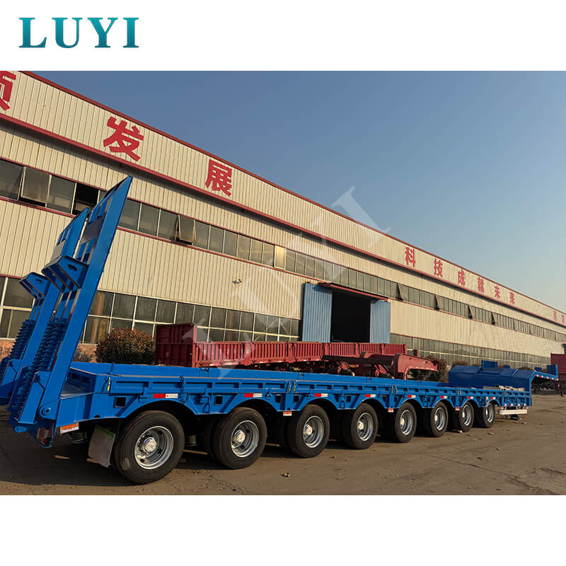 La semi-remorque surbaissée robuste à 8 essieux de 150 tonnes LUYI, originaire de la province du Shandong, en Chine, est une remorque de camion professionnelle conçue spécifiquement pour le transport de marchandises ultra-lourdes.