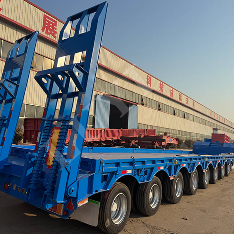 En termes de configuration, il adopte un système de freinage à double ligne pour garantir la sécurité de conduite, des pieds de support standard de 28 tonnes pour un support stable et des pivots d'attelage JOST disponibles en options de 2 pouces (50 mm) ou 3,5 pouces (90 mm). Les couleurs peuvent être personnalisées par les clients, offrant ainsi une solution efficace et fiable pour le transport ultra-lourd.