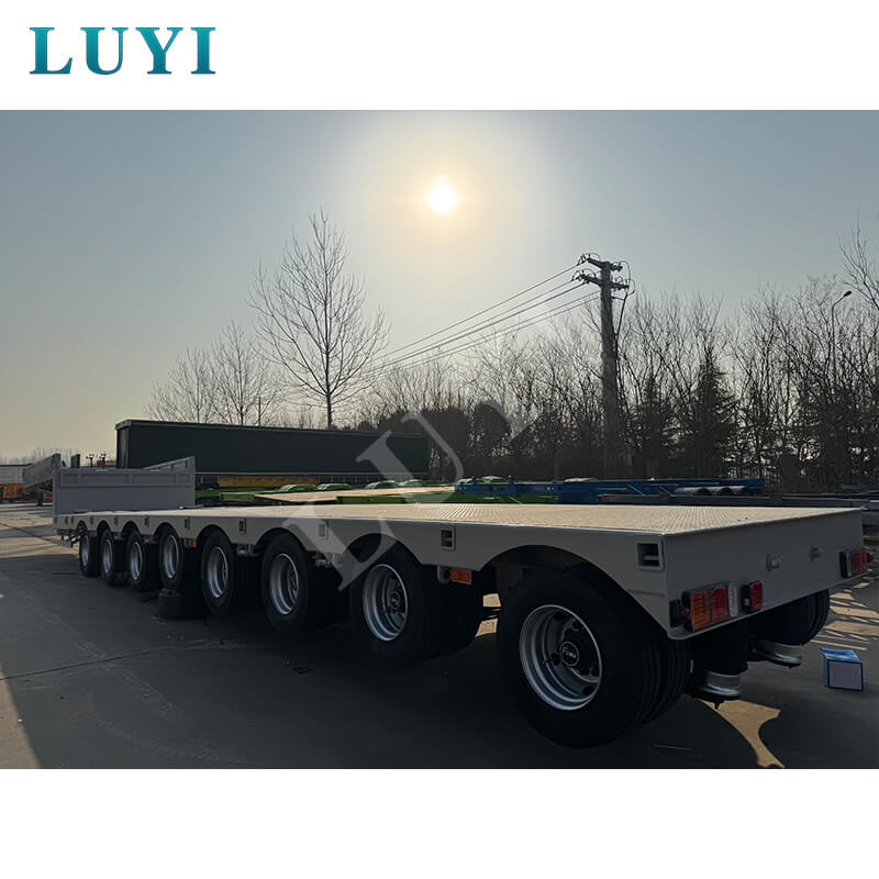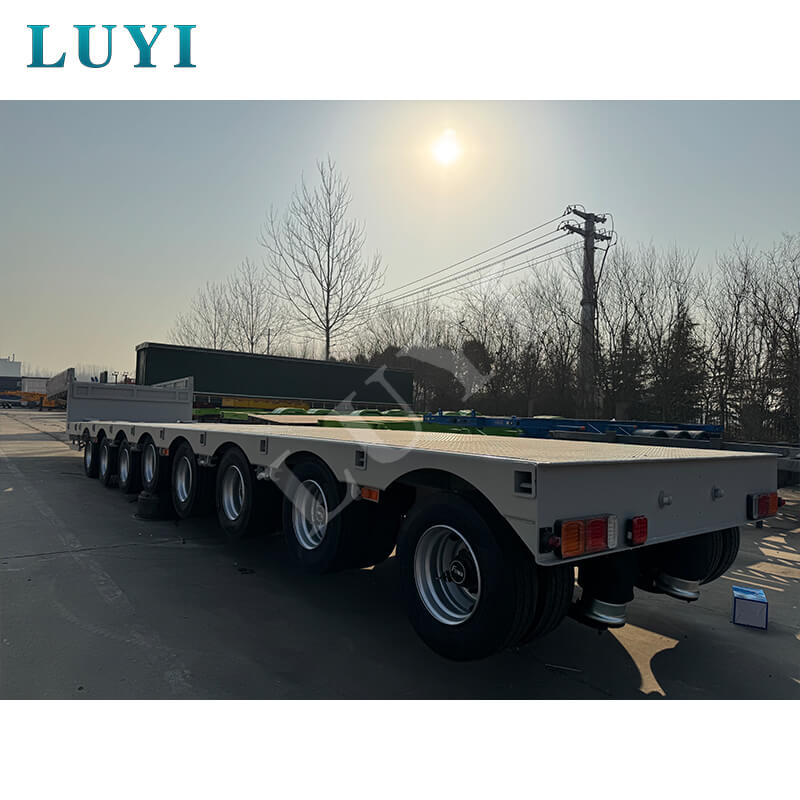 La remorque est équipée de 8 essieux Fuwa ou BPW et prend en charge des options de suspension mécanique ou pneumatique pour un fonctionnement stable. Il correspond aux pneus 12R22.5/12.00R20/11R22.5 et est équipé d'un train d'atterrissage standard de 28 tonnes et de axes d'attelage JOST de 2 pouces (50 mm) ou 3,5 pouces (90 mm) pour une connexion sécurisée. Avec des couleurs personnalisables et une structure solide, il allie flexibilité, durabilité et sécurité, ce qui en fait un choix idéal pour le transport d'équipements lourds.