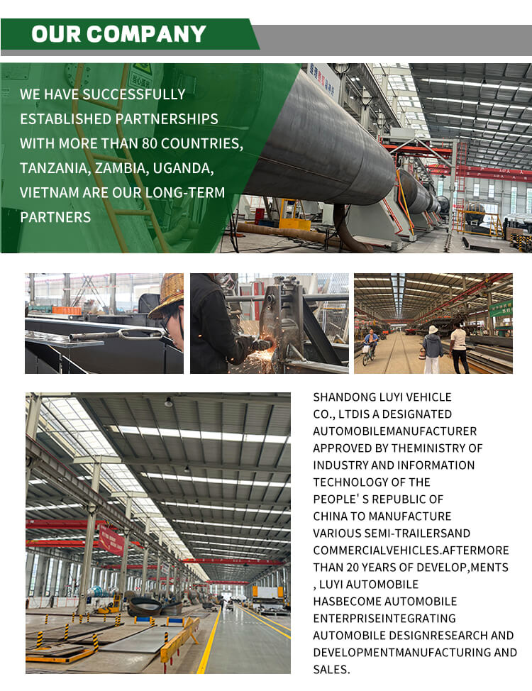 La semi-remorque citerne de carburant à 3 essieux LUYI de 60 tonnes, provenant de la base de fabrication de haute qualité du Shandong, en Chine, est un équipement de transport fiable et efficace spécialement conçu pour le transport pétrolier. L'ensemble du véhicule est fabriqué en acier à haute résistance, offrant à la fois robustesse et durabilité. Avec des dimensions précises de 12 500 x 2 500 x 3 600 MM, il assure une flexibilité de transport et une efficacité de chargement.