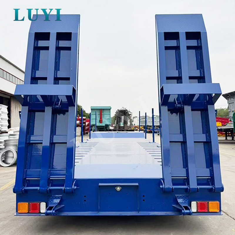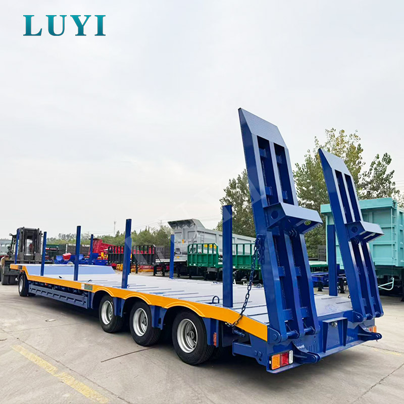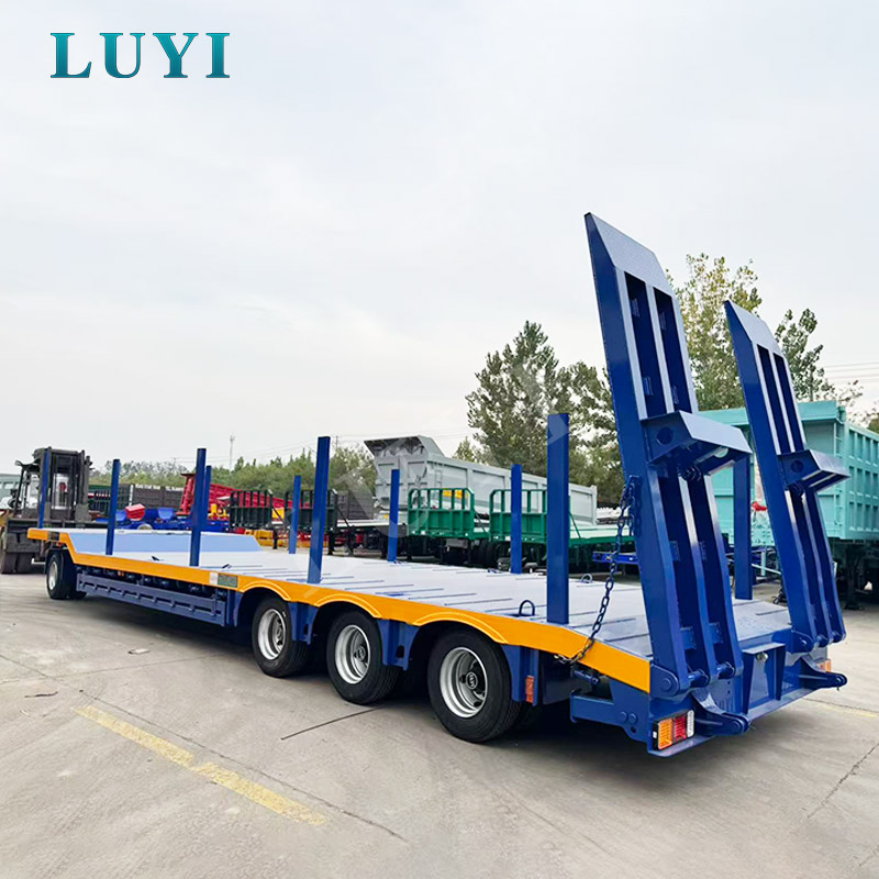 La semi-remorque surbaissée à 3 essieux LUYI est un véhicule de transport haute performance originaire du Shandong, en Chine, conçu pour le transport de marchandises lourdes comme les excavatrices.