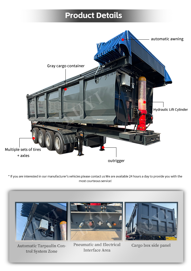 Semi-remorque à benne basculante remorque à benne hydraulique à 4 essieux