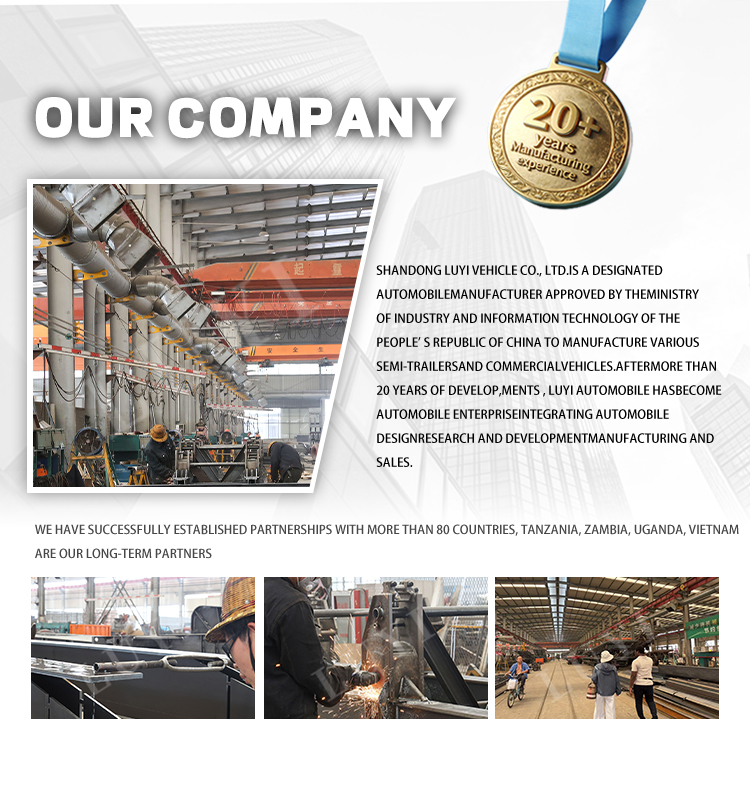Cette semi-remorque à benne arrière LUYI est une semi-remorque de transport robuste originaire du Shandong, en Chine, spécialement conçue pour les applications de remorquage de camions lourds dans les secteurs minier, des infrastructures et du transport de marchandises en vrac. F......