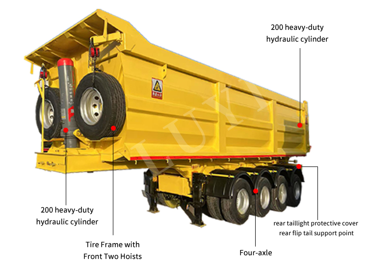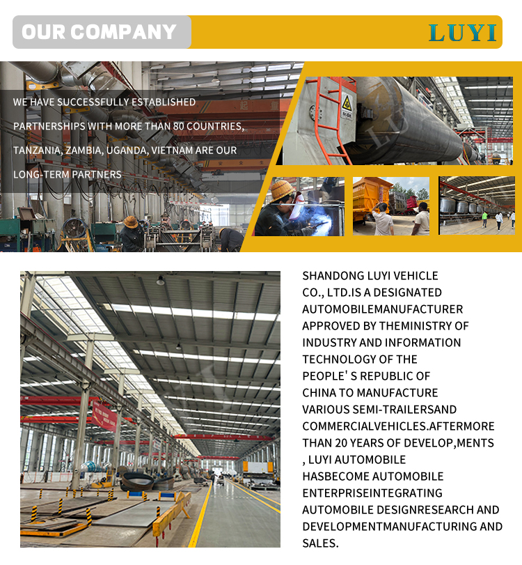 La couleur du corps prend en charge la personnalisation personnalisée, répondant pleinement aux besoins d'affichage de la marque et d'utilisation des différents clients. Adhérant à l'aspiration initiale de qualité, LUYI a fait de cette semi-remorque à benne arrière à 4 essieux un partenaire fiable dans le domaine du transport lourd grâce à des processus de fabrication matures et des normes d'inspection de qualité strictes, offrant aux clients du monde entier des solutions de transport efficaces, sûres et économiques.