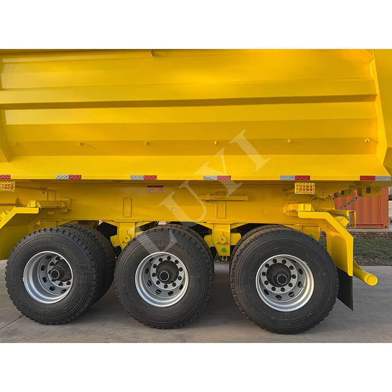Le véhicule a une excellente flexibilité. Les essieux peuvent être configurés avec des essieux 2/3/4, équipés d'essieux de marque Fuwa ou BPW. La suspension peut être une suspension mécanique ou pneumatique en option, s'adaptant aux différentes conditions routières ; il est associé à des pneus 12R22.5/12.00R20/11R22.5规格 pour une conduite stable. Il est équipé de stabilisateurs standards de 28 tonnes pour assurer la sécurité du stationnement. Le kingpin propose des options JOST de 2 pouces (50 mm) ou de 3,5 pouces (90 mm). La couleur peut être personnalisée selon les besoins du client. La conception de la benne hydraulique est efficace et pratique, offrant une solution de haute qualité pour le transport de matériaux.