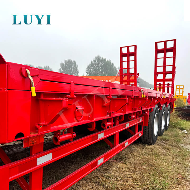 La semi-remorque surbaissée à col de cygne détachable à 3 essieux LUYI de 60 tonnes, produite dans le Shandong, en Chine, est une remorque de fret professionnelle. Son corps est en acier à haute résistance, avec des dimensions de 1700030001500mm. La structure est robuste et l'espace est suffisant, permettant un chargement stable de marchandises lourdes et s'adaptant aux diverses opérations de traction des camions.