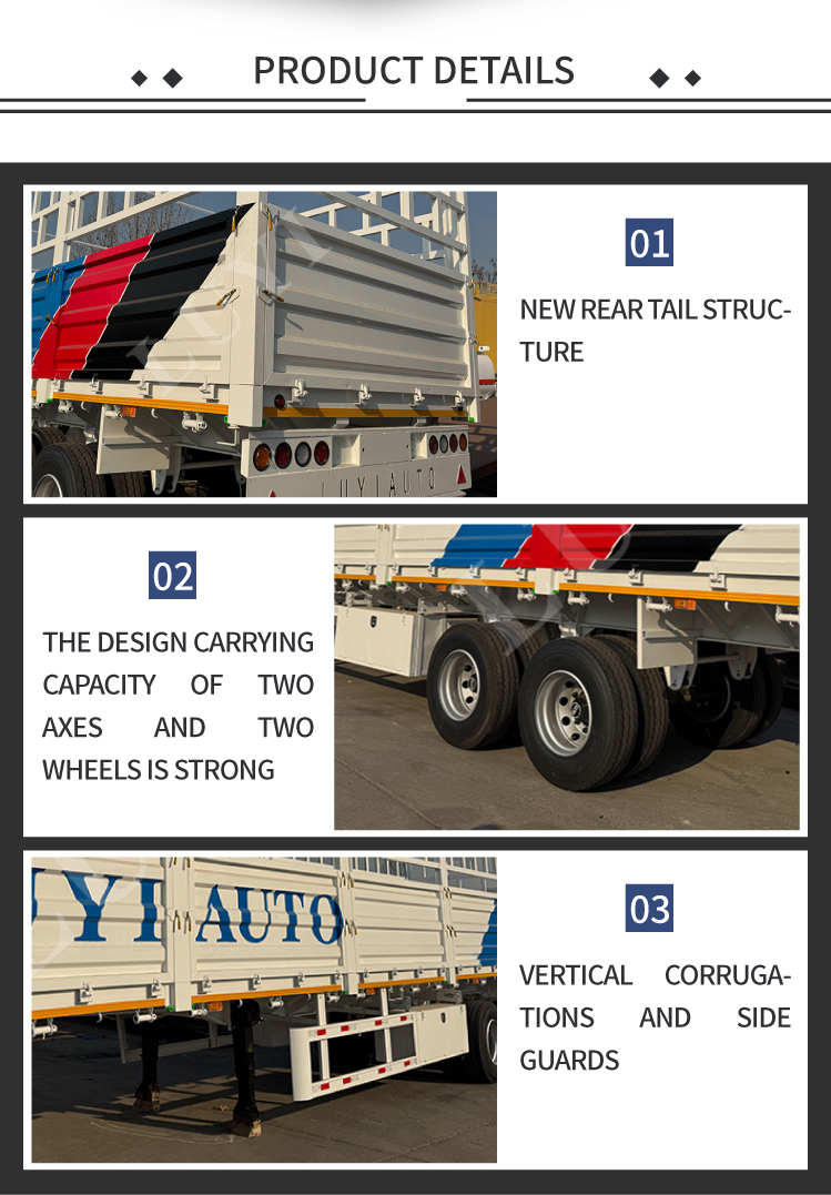 La nouvelle semi-remorque à parois latérales à haute clôture à 2 essieux de LUYI offre des capacités de charge doubles de 30 et 60 tonnes, répondant parfaitement aux besoins de fret moyens et lourds tels que les matériaux de construction, les équipements industriels et les produits agricoles. La structure haute de la clôture empêche efficacement les déversements de marchandises pendant le transport, tandis que les fonctionnalités personnalisables vous permettent d'ajuster la hauteur de la clôture, les matériaux du chariot et les sols antidérapants pour répondre exactement à vos besoins. Cette remorque polyvalente et sur mesure est désormais disponible à la vente, idéale pour les entreprises de logistique et les opérateurs de fret.