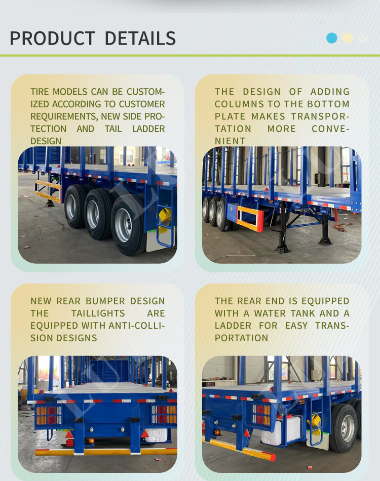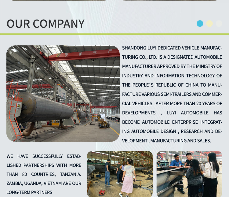 Shandong Luyi Special Vehicle Manufacturing Co., Ltd. (LUYI) lance une nouvelle semi-remorque à plateau en acier à 3 essieux de 40 pieds et 50 tonnes, adaptée aux scénarios de transport de fret et intermodal de poids moyen et lourd. La longueur standardisée de 12,2 mètr......