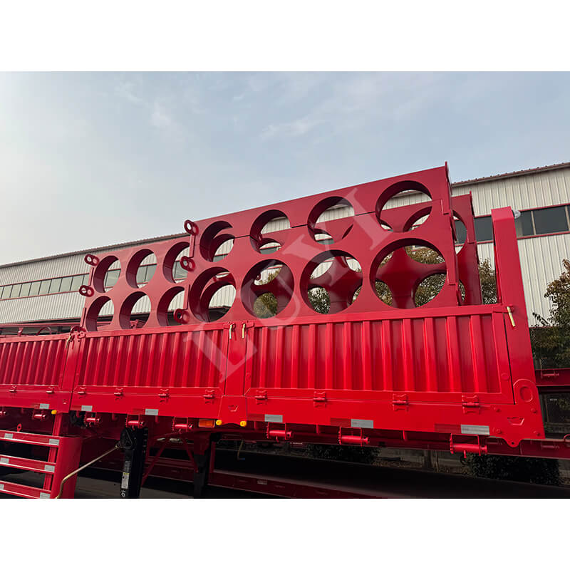 Equipée de 6 essieux (16 tonnes chacun), la semi-remorque propose de multiples options de pneumatiques : 12R22.5/12.00R20/11R22.5, assurant une excellente stabilité de conduite. Il adopte une suspension mécanique, associée à des ressorts à lames de 90 mm (largeur) × 13 mm (épaisseur) × 10 (couches), s'adaptant aux diverses conditions routières. Les stabilisateurs sont de la spécification standard de 28 tonnes et l'échelle mécanique facilite le chargement et le déchargement. La couleur de la carrosserie permet la personnalisation du client pour correspondre à différents scénarios d'utilisation et images de marque, garantissant ainsi un transport de marchandises efficace et sûr et fournissant un support d'équipement fiable pour les opérations logistiques.
