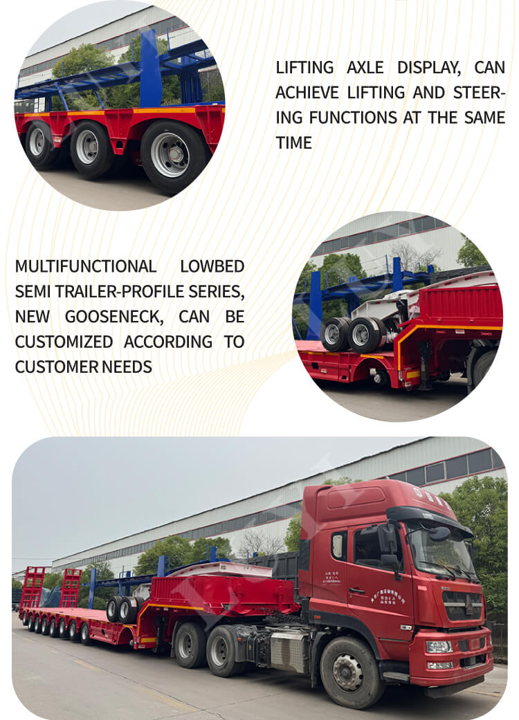 La semi-remorque surbaissée à suspension pneumatique LUYI à 8 essieux 120T, originaire du Shandong, en Chine, est une semi-remorque haute performance spécialement conçue pour le transport d'équipements lourds. Fabriqué en acier de haute qualité, il mesure 22 000 × 3 000 × 1 600 mm avec une charge utile maximale de 100 T, répondant facilement aux besoins de transport de divers équipements lourds.