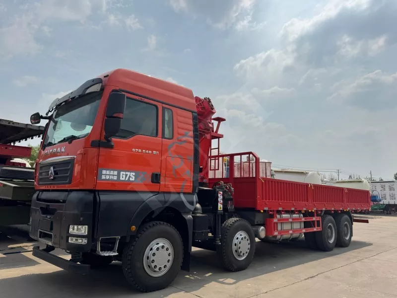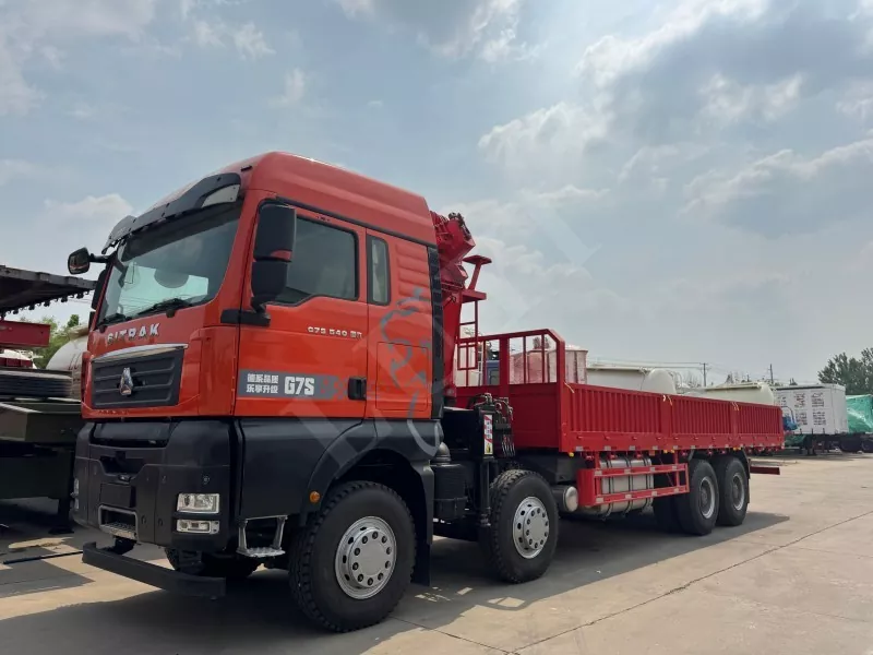 Shandeka G7S 540HP National VI chassis, Sinotruk gearbox, speed ratio 3.7, the configuration of this model ensures smooth shifting and efficient transmission efficiency, the body length is 6.925 meters, the width is 2.496 meters, the height is 3.29 meters, the vehicle weight is 8.8 tons, the total mass is 25 tons, and the total traction mass is 40 tons. L'ajout d'un camion à plat et d'une grue à bras pliants offre de puissantes capacités de levage et convient à plusieurs champs tels que la construction et la logistique.